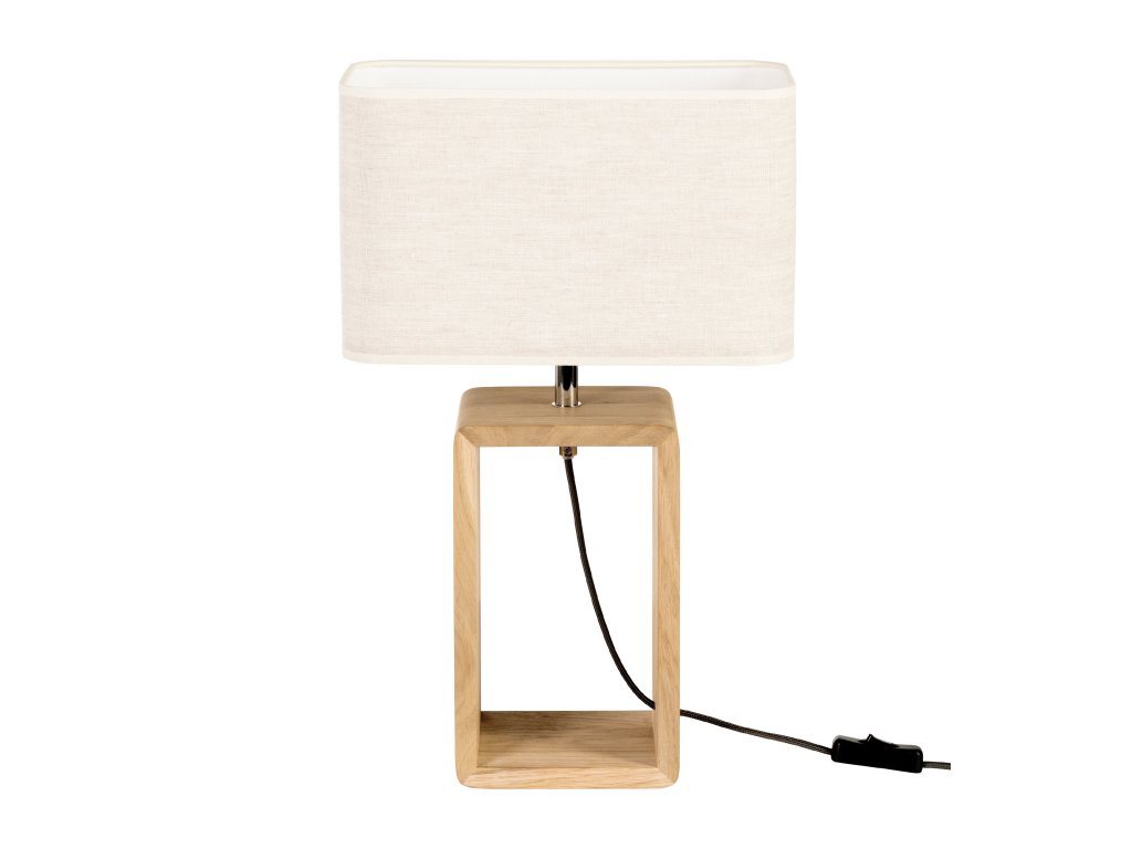 Stolová lampa je vyrobená z dubového dreva a kovu a , čo zaisťuje pevnú a odolnú konštrukciu a tienidlo je z textilu.