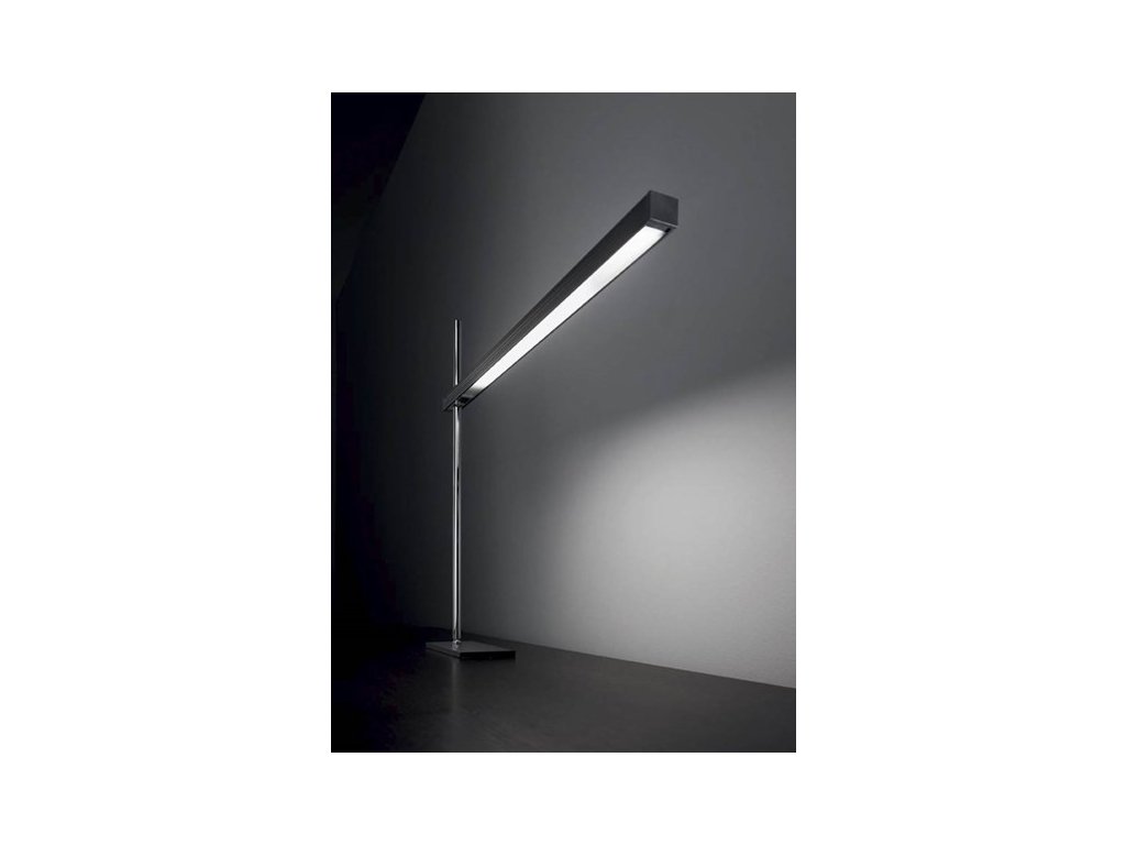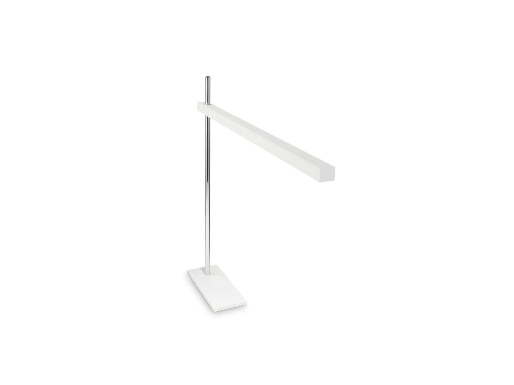 Stolová lampa GRU od talianskej značky Ideal Lux je vyrobená z eloxovaného hliníka s detailmi chrómu. Difúzer vyrobený zo skla je otočný a nastaviteľný, vďaka tomu je lampa vhodná pre využitie pri písaní domácich úloh alebo pri práci v kancelárii. Lampa má integrovaný LED modul, ktorý svieti teplým bielym svetlom.