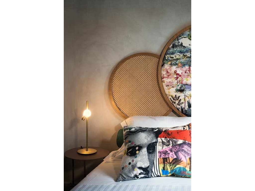 Hovorí sa, že inšpirácia prichádza, ako keď sa vám v hlave rozsvieti žiarovka. Idea sa zbavuje dizajnu a ponecháva podstatu svetla; trojrozmernú "žiarovku" a mosadznú skrutkovaciu päticu, kúzelne zavesenú na nástennom podstavci, ktorý sa dodáva v brúsenej mosadze, zrkadlovom alebo bielom matnom prevedení. K dispozícii je aj verzia nástenného svietidla pre zapustenú montáž, ktorá hrá na nečakaný, ironický efekt nápadu, ktorý sa objaví, keď a kde to najmenej čakáte.