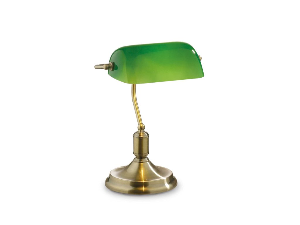 Elegantná stolná lampa Lawyer z kolekcie interiérového osvetlenia značky Ideal Lux v retro štýle vhodná do obývacích izieb, pracovní, hotelových interiérov, knižníc alebo študovní. Základňa stolnej lampičky s priemerom 26 cm je kovová s povrchovou úpravou starožitnej mosadze, tienidlo je zhotovené z fúkaného zeleného skla. Na prívodnom kábli lampy je umiestnený vypínač. Svietidlo je osadené päticou E27 pre žiarovku s maximálnym príkonom 1 x 60 W. Žiarovka nie je súčasťou balenia, odporúčame zvoliť LED žiarovku, ktorá znižuje náklady na elektrickú energiu. Krytie IP20 je vhodné na použitie do interiéru. Celkové rozmery sú 38 x 26 x 26 cm. Je určená na napájanie zo siete na 220-240 V a vzťahuje sa na ňu predĺžená záruka 5 rokov.Dodatočné parametre
