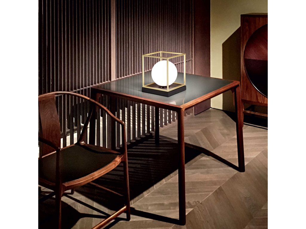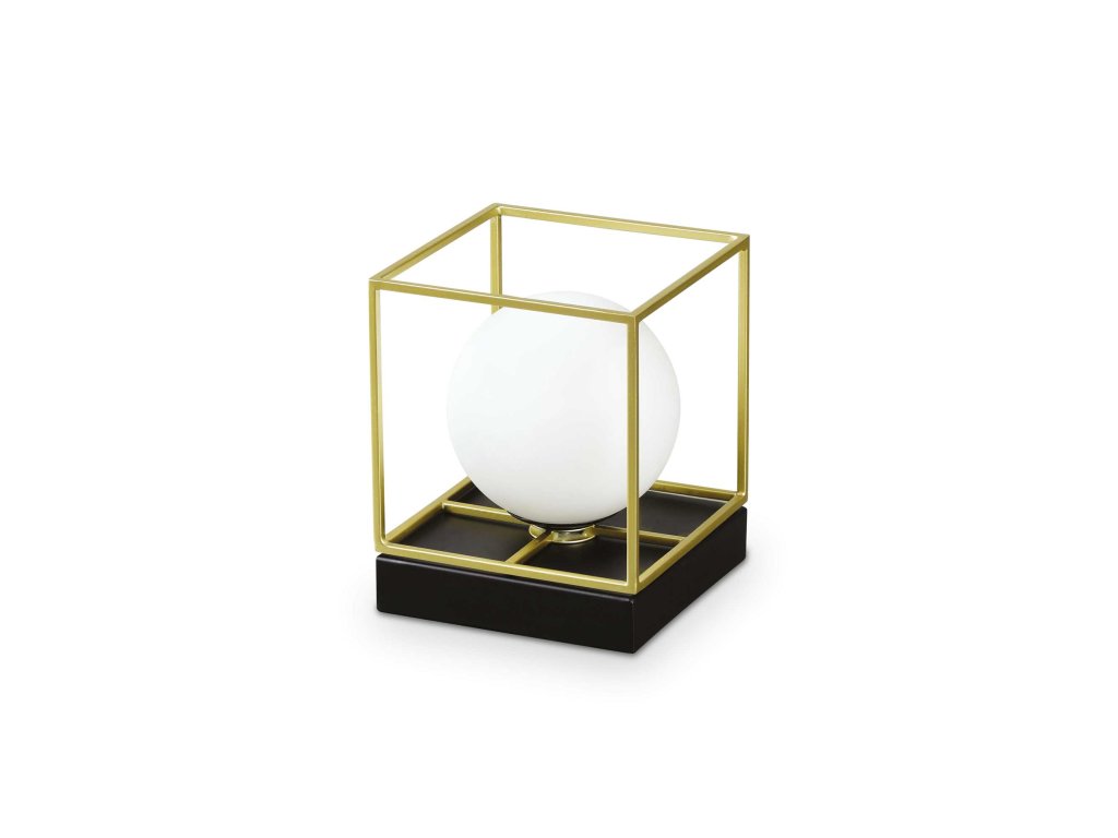 - vo vnútri kubického rámu je usadený okrúhly difúzor z leptaného fúkaného skla v bielej farbe.