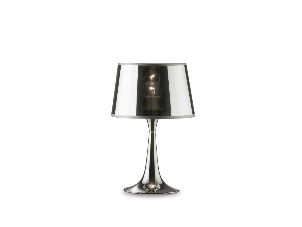 Stolná lampa London z kolekcie dizajnového osvetlenia značky Ideal Lux v luxusnom chrómovom prevedení s priemerom 23,5 cm je ideálnou voľbou na osvietenie tmavých kútov obývacej izby, spálne či parcovne. Okrúhla základňa a rám svietidla sú zhotovené z kvalitného kovu v chrómovej farbe. Dizajn dopĺňa tienidlo z polopriehľadnej chrómovej PVC fólie. Svietidlo je osadené päticou E27 pre žiarovku s maximálnym príkonom 1 x 60 W. Zdroj nie je súčasťou balenia. Odporúčame zvoliť LED žiarovku na úsporu elektrickej energie. Krytie IP20 je vhodné pre vnútornú inštaláciu. Celkové rozmery svietidla sú 36,5 x 23,5 x 23,5 cm. Súčasťou prívodného kábla je vypínač. Svietidlo je určené na napájanie zo siete na 220-240 V a vzťahuje sa naň predĺžená záruka 5 rokov.Dodatočné parametre