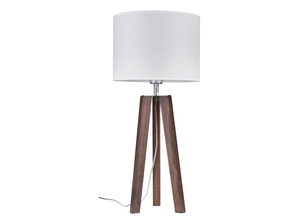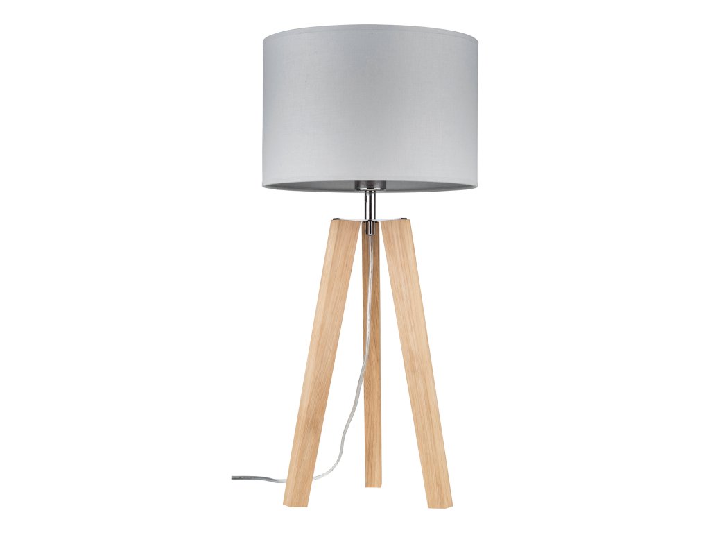 Klasická stolná lampa LOTTA sa skladá z trojnožkovej základne z olejovaného masívneho dubového alebo bukového dreva a látkového valcovitého tienidla.