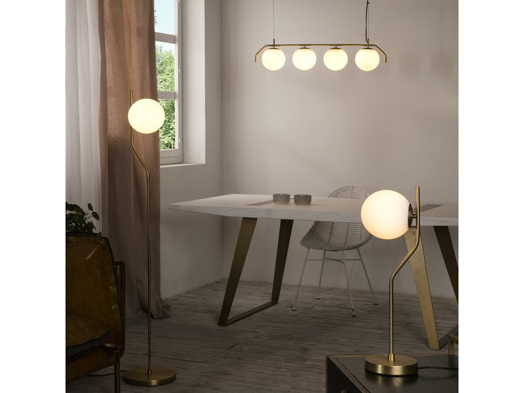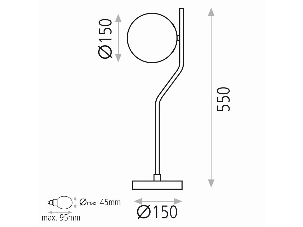 Atraktívna stolná lampa s moderným dizajnom zo série Maui, vyrobená z okrúhlej kovovej základne s dlhým zakriveným kovovým ramenom a guľovým tienidlom z opálového skla. Štýlové svietidlo, ktoré naplní jedinečnou atmosférou a zútulní vašu obývaciu izbu, jedáleň, spálňu, kanceláriu, hotel aj reštauráciu.