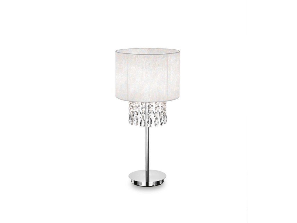 Luxusná stolná lampa Opera z kolekcie interiérového osvetlenia značky Ideal Lux s výškou 52 cm vkusne doladí obývaciu izbu, spálňu alebo hotelový interiér. Lampu tvorí kovová základňa v chrómovej farbe, ktorú dopĺňa tienidlo s priemerom 25 cm z PVC fólie s metalickými nitkami a oveskami z brúseného krištáľu. Vnútri je svietidlo osadené päticou E27 o maximálnom príkone 1 x 60 W. Žiarovka nie je súčasťou balenia. Na úsporu elektrickej energie odporúčame použiť LED svetelný zdroj. Pre ľahké ovládanie je na svietidle integrovaný vypínač. Krytie IP20 vyjadruje vhodnosť na použitie do interiéru. Celkové rozmery sú 52 x 25 x 325 cm. Je určená na napájanie zo siete na 220-240 V a vzťahuje sa na ňu predĺžená záruka 5 rokovDodatočné parametre