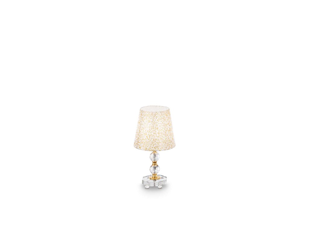 Luxusná stolná lampa Queen z kolekcie interiérového osvetlenia značky Ideal Lux v zlatom prevedení perfektne nasvietia tmavé kúty v obývacej izbe, spálni či pracovni alebo hotelové interiéry v klasickom aj modernom štýle. Pozlátený rám svietidla je zhotovený z kvalitného kovu a je doplnený o brúsený krištáľový podstavec s ozdobnými prvkami. Tienidlo z PVC fólie je pokryté prešívanou dekoráciou a zlatými trblietkami. Svietidlo je osadené päticou E27 pre žiarovku s maximálnym príkonom 1 x 60 W. Zdroj nie je súčasťou balenia. Odporúčame zvoliť LED žiarovku na úsporu elektrickej energie. Krytie IP20 je vhodné na použitie do interiéru. Na prívodnom kábli je umiestnený vypínač. Celkové rozmery sú 36,5 x 20 x 20 cm. Svietidlo je určené na napájanie zo siete na 220-240 V a vzťahuje sa naň predĺžená záruka 5 rokov.Dodatočné parametre