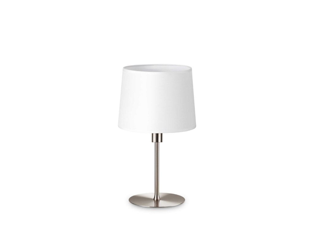 Stolová lampa SET UP z kolekcie designového osvetlenia značky Ideal Lux v menšej verzii skvele doplní každý moderne zariadený interiér. Vzhľadom na nízke krytie IP20 nie je vhodná do miestností s výskytom vyššej vlhkosti vzduchu. Výhodou tohto svietidla je jeho variabilita a veľký výber tienidiel, ktoré je nutné zvlášť prikúpiť. Okrúhla základňa s priemerom 14,5 cm a telo lampy sú zhotovené z kvalitného kovu s čiernou povrchovou úpravou nanášanou metódou práškovania. Svietidlo je vybavené päticou E27 pre žiarovku s maximálnym príkonom 1 x 60 W (zdroj nie je súčasťou balenia). Dodávateľ odporúča zvoliť LED žiarovku E27 8W 810lm 3000K. Celkové rozmery podstavy činia v: 23,5 x 14,5 x 14,5 cm a tienidlá 20cm x 15cm. Na prívodnom kábli je umiestnený vypínač. Je napájaná zo siete na 220-240 V