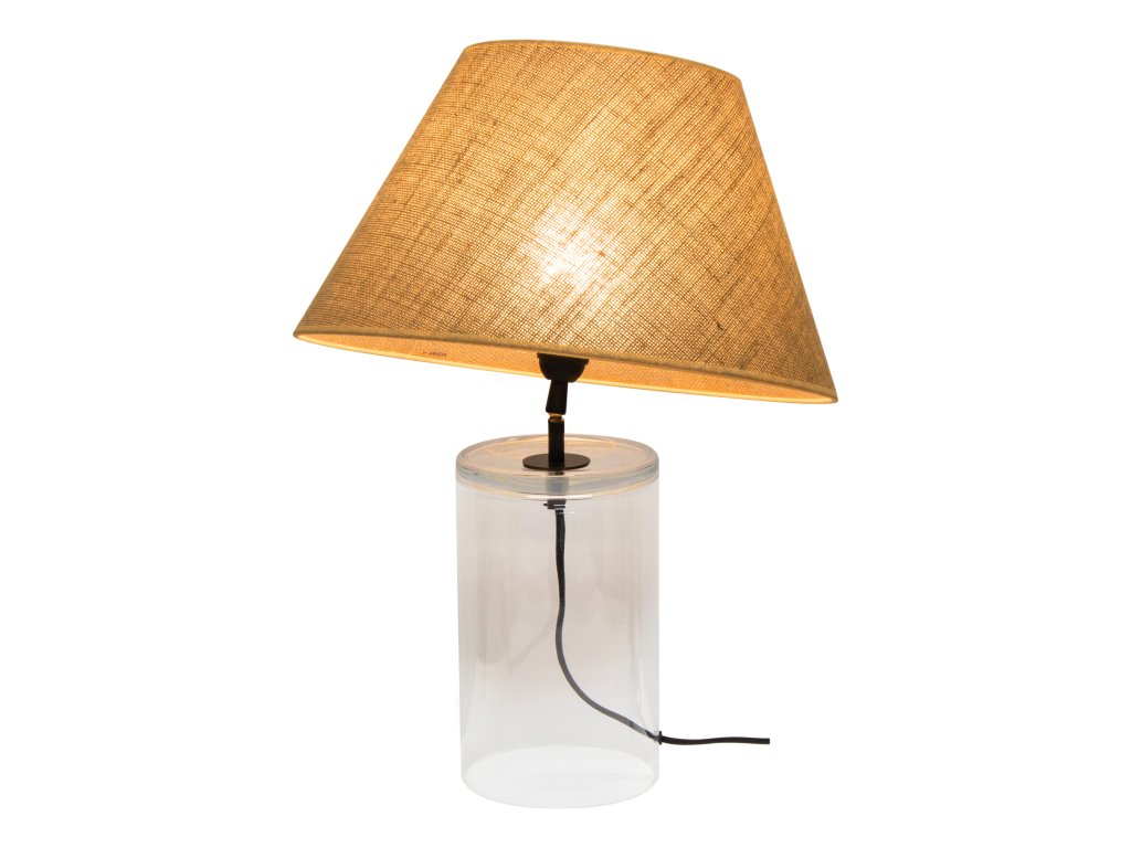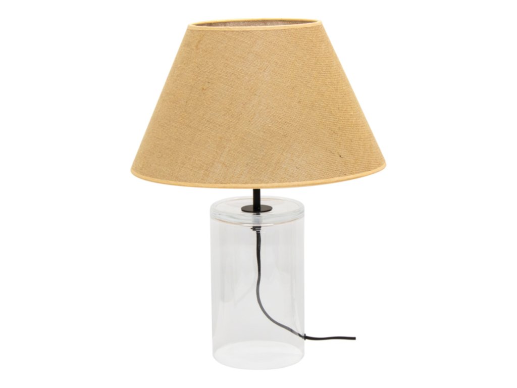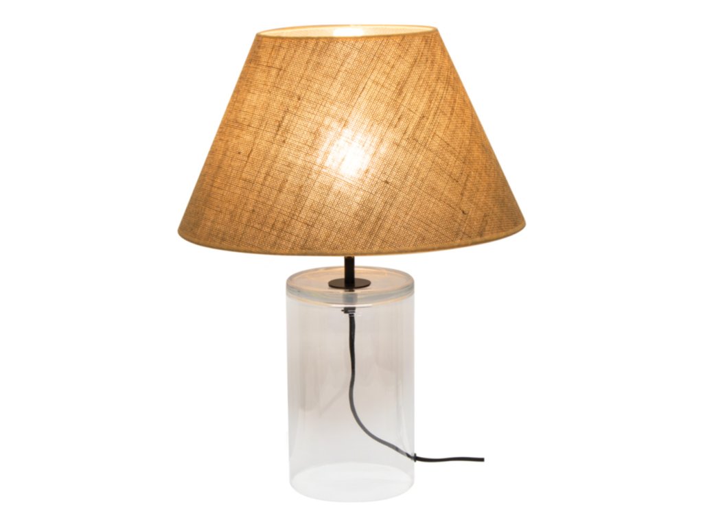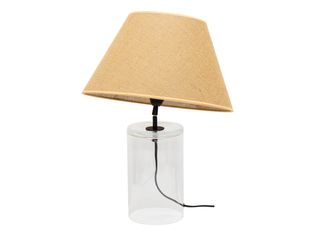 Stolová lampa VASO JUTE je elegantné a štýlové riešenie osvetlenia vášho vnútorného priestoru. Tienidlo je vyrobené z textilu v béžovej farbe, zatiaľ čo sklenená priehľadná noha lampy zaisťuje harmonické rozloženie svetla.