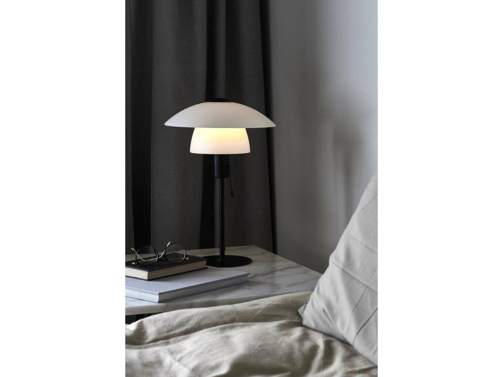 Nadčasová stolná lampa Verona v klasickom škandinávskom dizajne, je vyrobená z dvoch krásnych opálových bielych sklenených tienidiel, ktoré zaisťujú pekné rovnomerné rozloženie svetla do miestnosti.