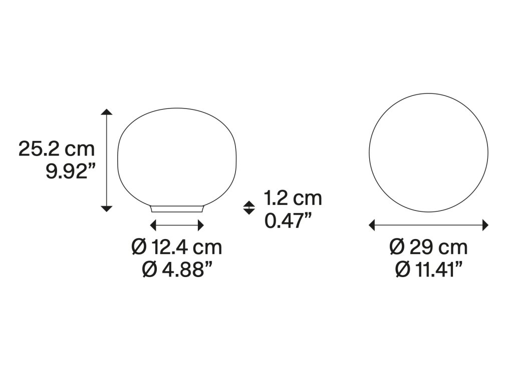 Difúzory zo skla s lesklým bielym povrchom rovnomerne rozptyľujú svetlo a sú dostupné v štyroch priemeroch: 14, 22, 29 a 42 cm.