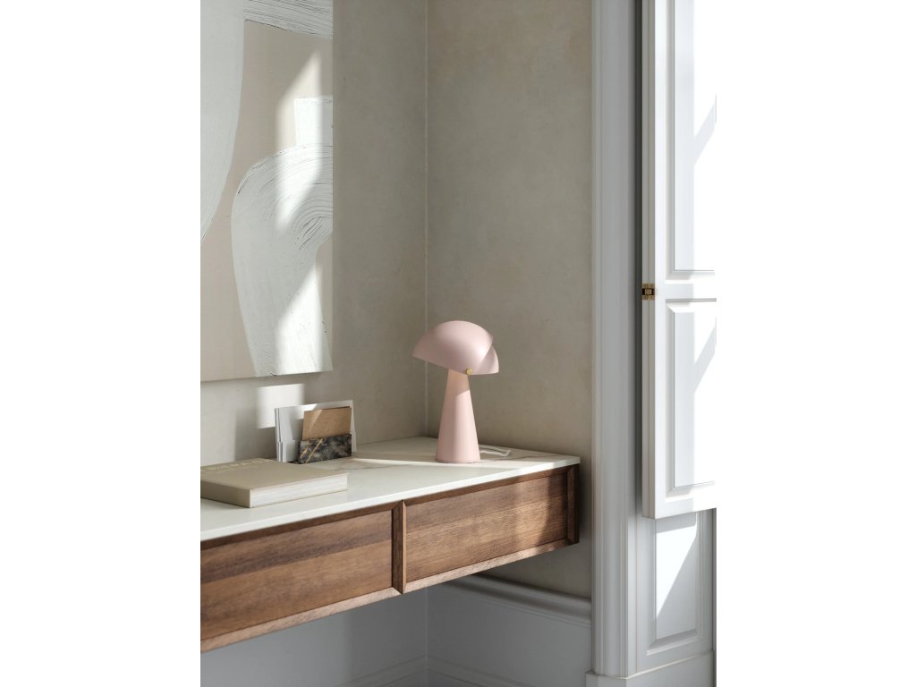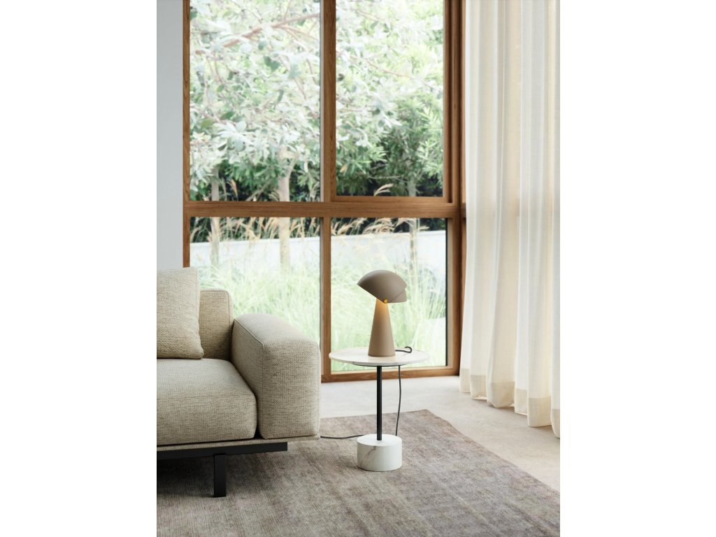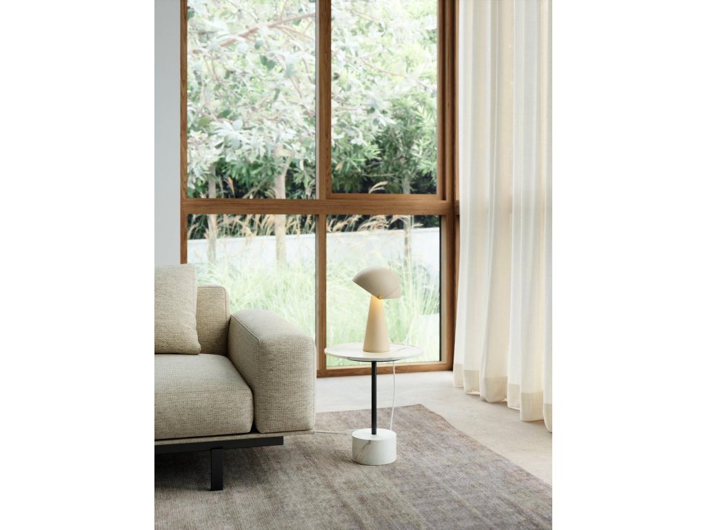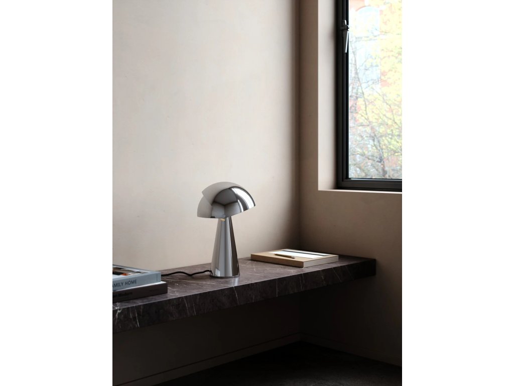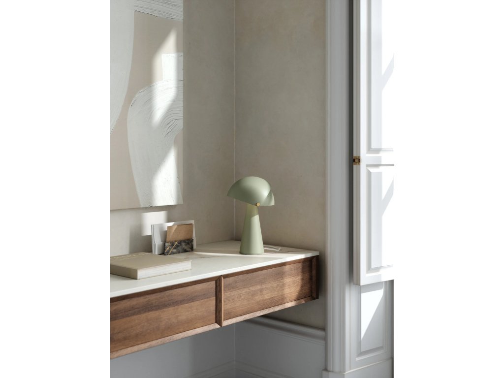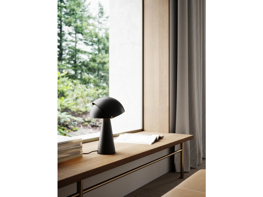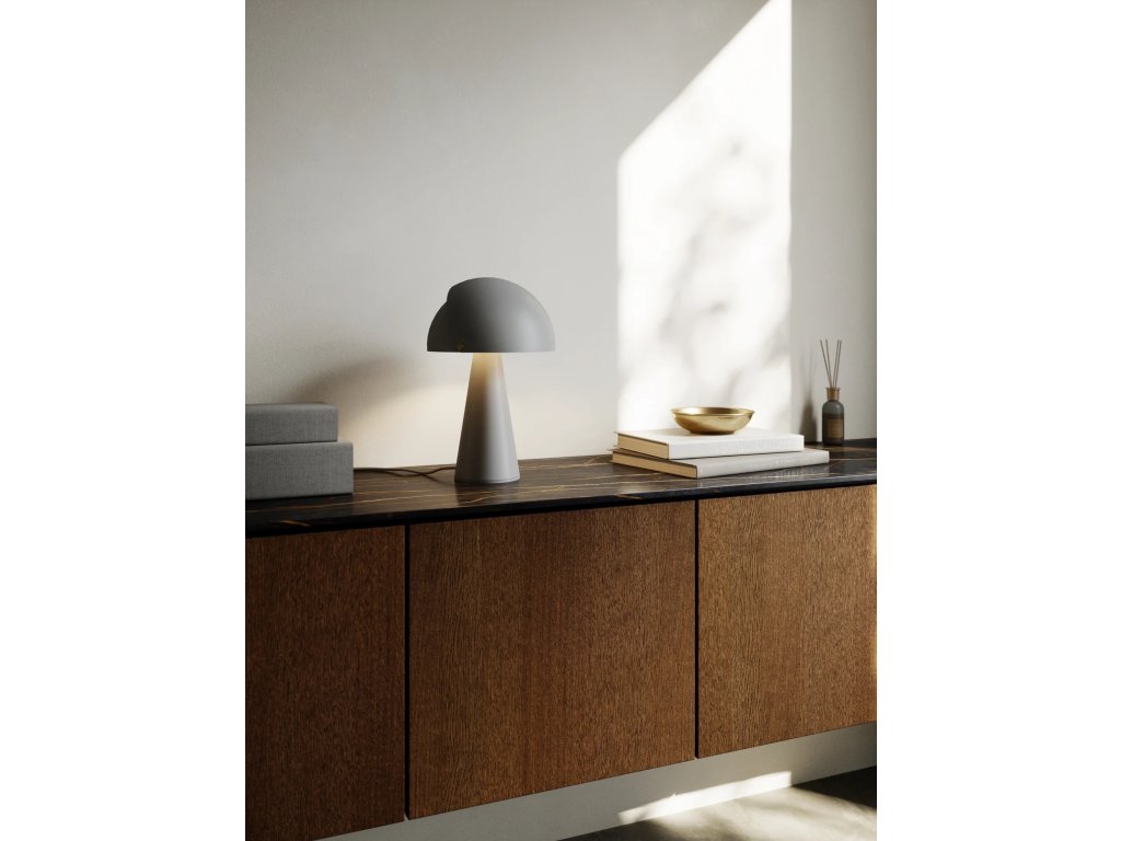 Kompaktná základňa a premyslené proporcie tienidlá zaisťujú, že sa bez námahy zmestí na akýkoľvek stôl alebo nočný stolík.
