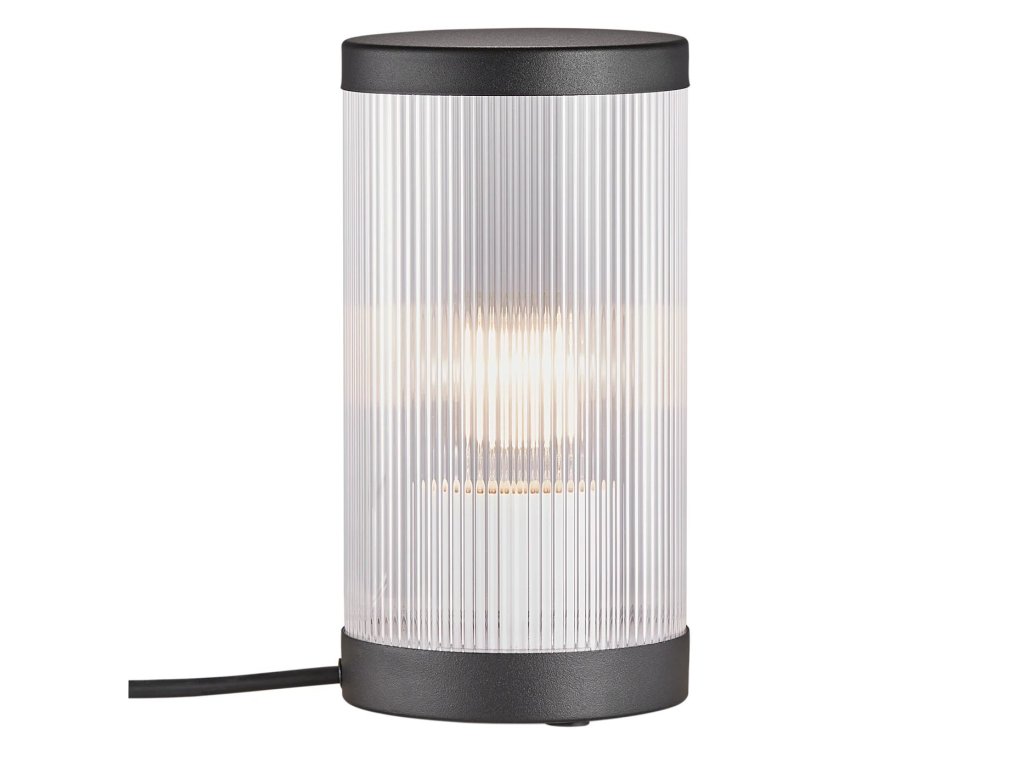 Stolná lampička, ktorá predstavuje moderný pohľad na tradičnú lampáš. Na prvý pohľad Vás zaujme vrúbkované sklo. (vzhľadom k vyššej ochrane IP54) Prípadne sa pozrite aj na ostatné svietidlá v rovnakom štýle.Dodatočné parametre