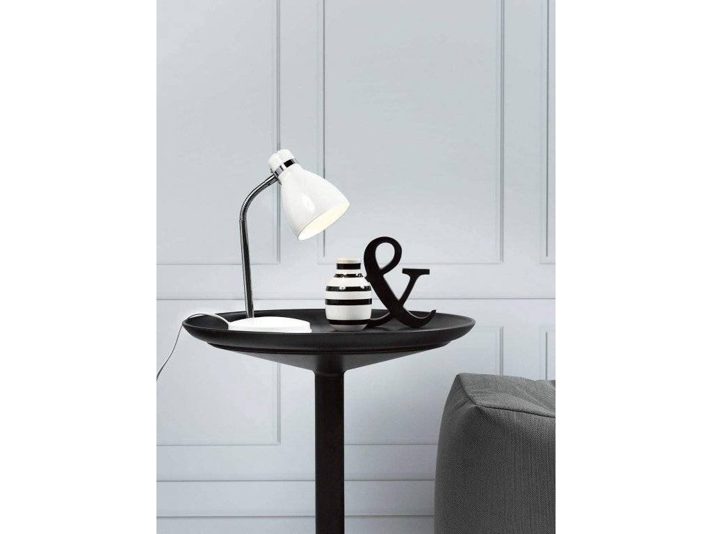 Malé elegantné stolné svietidlo Nordlux Cyclone, ktoré je možné otáčať a nakláňať podľa toho, kde je svetlo potrebné. Tienidlo a podstavec sú vyrobené z lakovaného kovu as výškou 33 cm je pre svetlo dostatok miesta bez ohľadu na to, či je umiestnené na kancelárskom stole alebo na nočnom stolíku.
