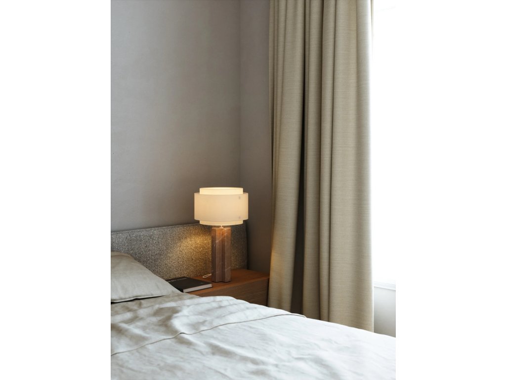 Ikonická stolová lampa Takai od štúdia Mavro//Lefèvre od Sofia Lefèvre je inšpirovaná architektonickým brutalizmom, ktorý sa zameriava na materiály, textúry a hmat. Masívny podstavec z hnedého mramoru má zaujímavý tvar, ktorý bez námahy nesie ľahké látkové tienidlo. Takai je krásny výrazný kus, ktorý nabáda k pohľadu z mnohých rôznych uhlov. Kombinácia hnedého mramoru, ľanového plátna a leštenej mosadze vytvára veľmi jemný a hrejivý dizajnový jazyk. Žiarovka E27 nie je súčasťou balenia. Mramor je jedinečný prírodný materiál, a preto sa línie, farby a vzory môžu u jednotlivých lámp líšiť. To je súčasťou kúzla práce s prírodnými materiálmi.