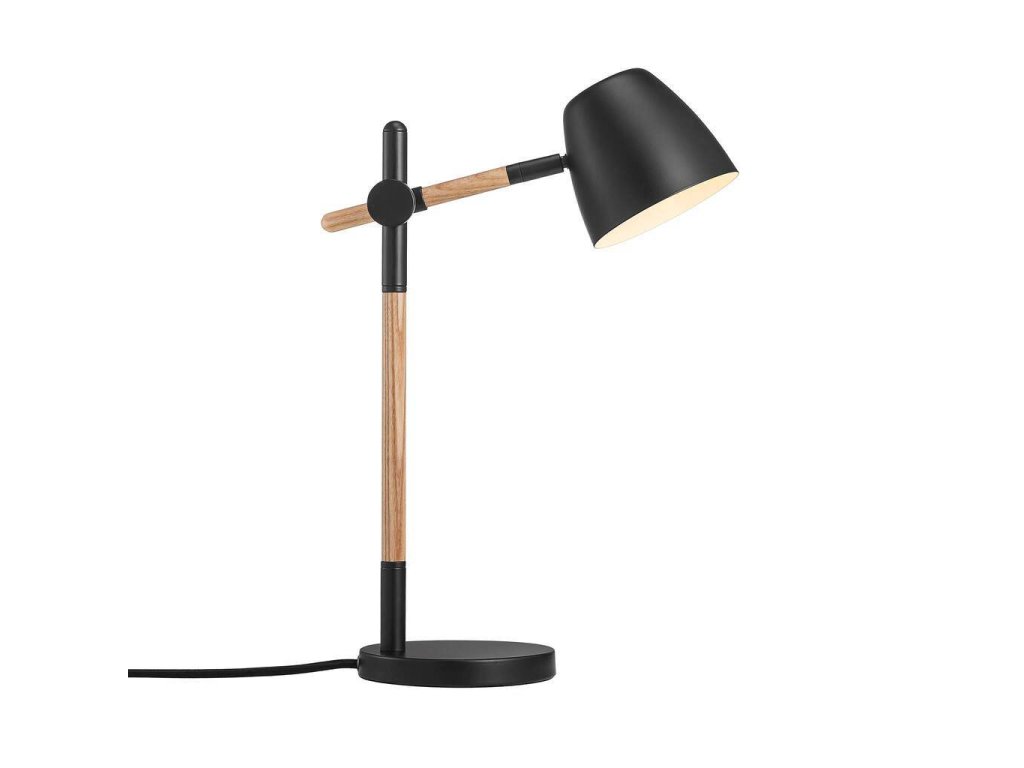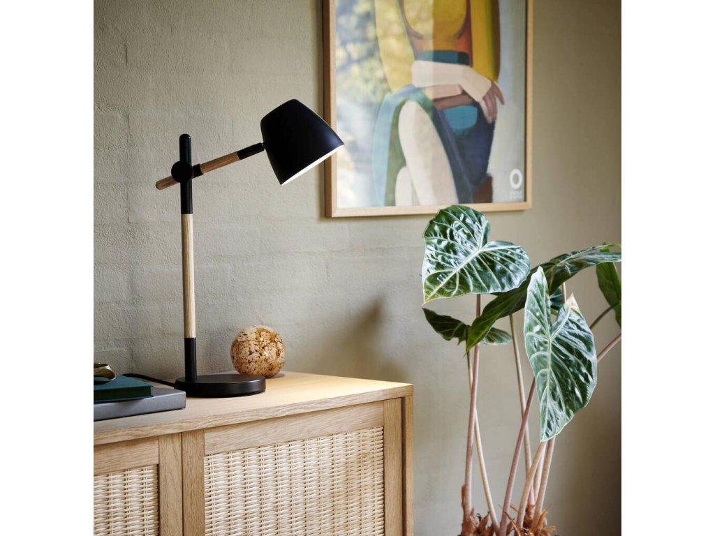 Stolová lampa Theo vyrobená z vysoko kvalitného kovu a dreva sa môže pochváliť odolnou a veľmi štýlovou konštrukciou.