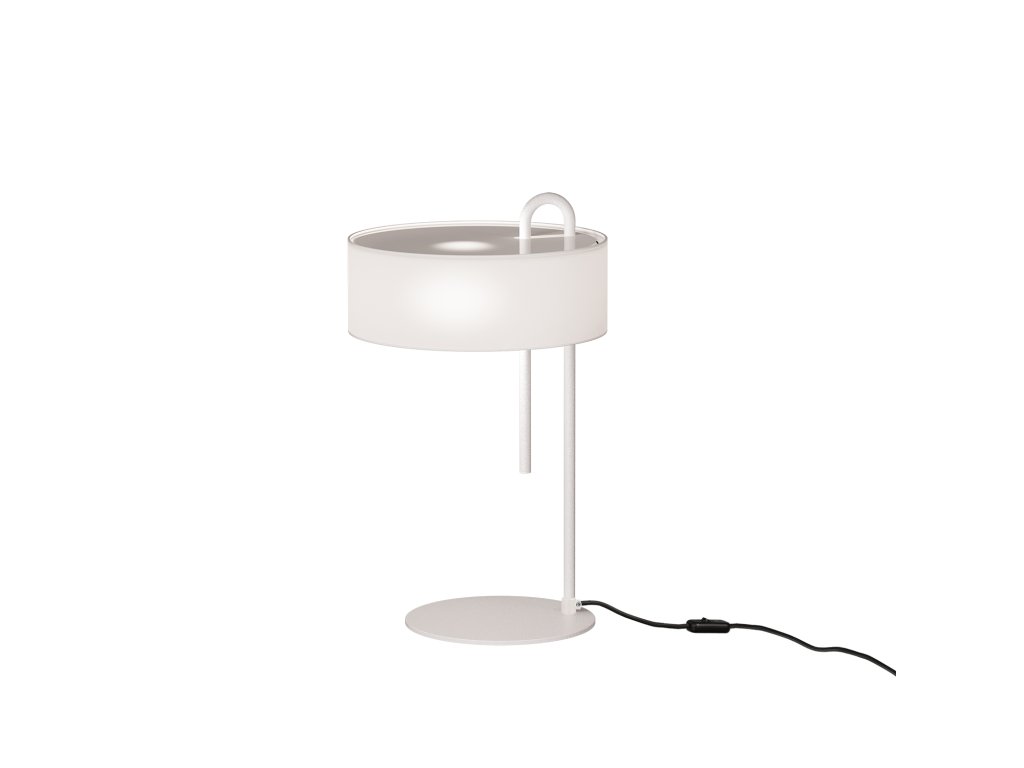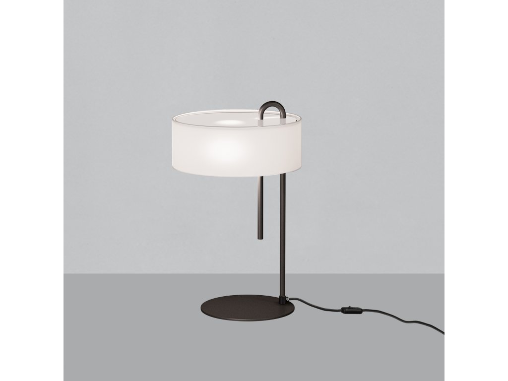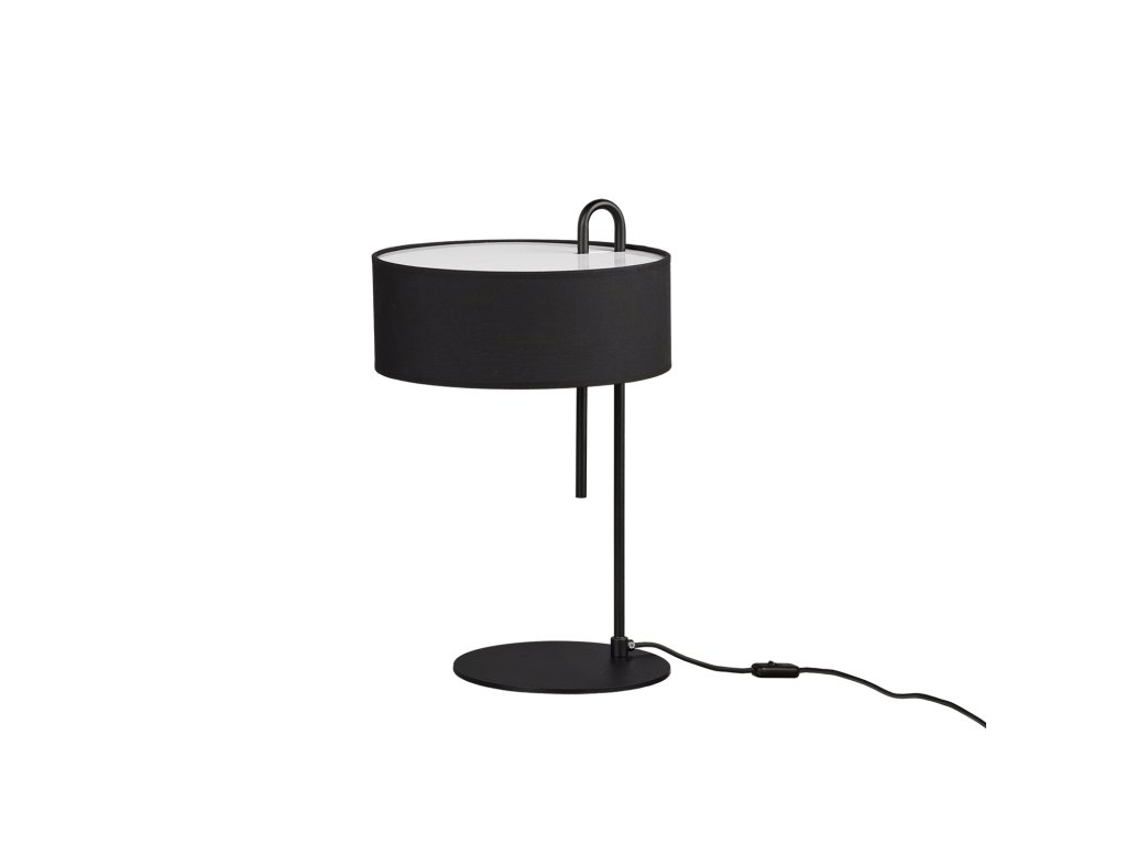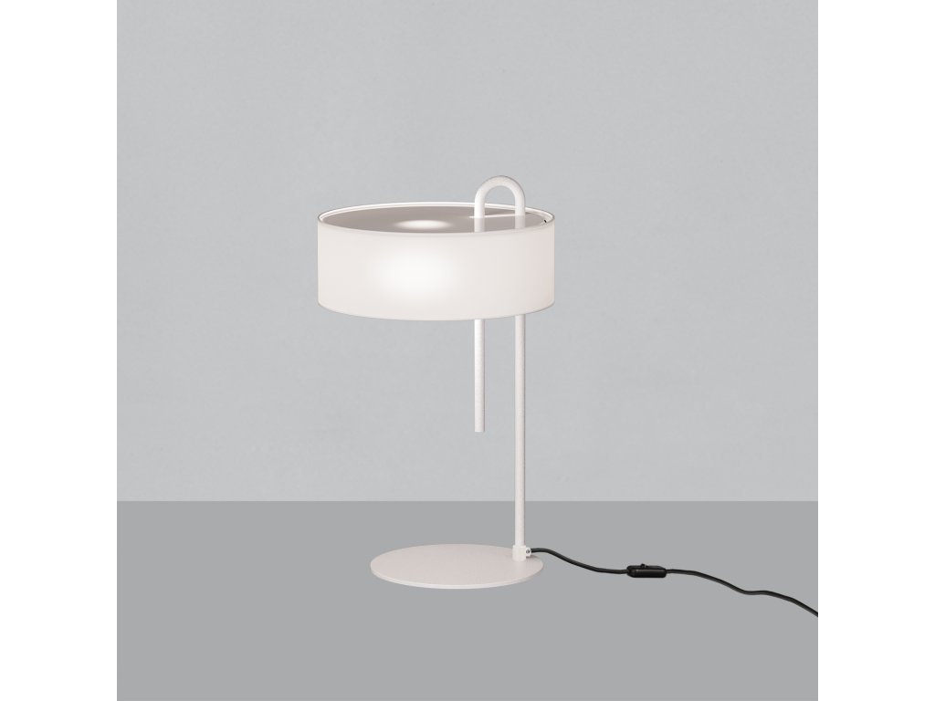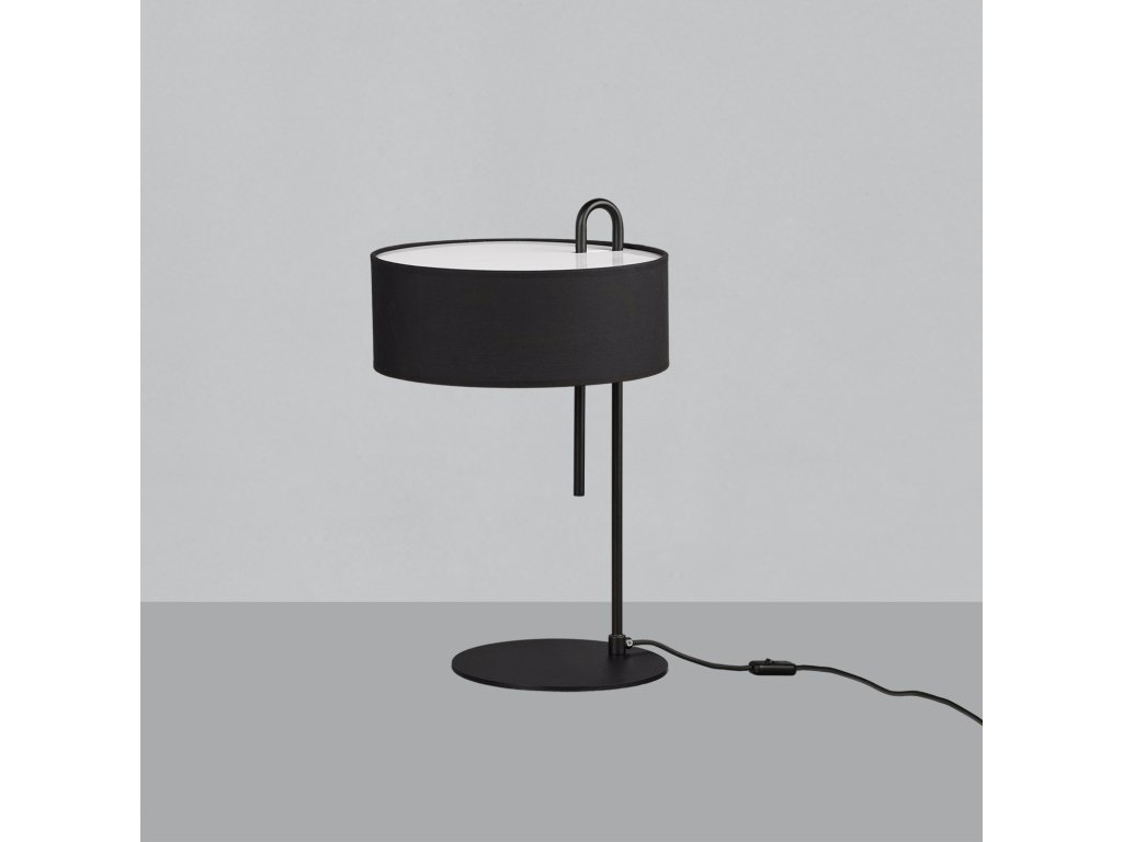 Stolnú lampu tvorí okrúhla základňa, lineárna stonka tvoriaca nohu lampy a kruhové látkové tienidlo (možno kombinovať medzi sebou farby stonky so základňou a farby tienidla - čierna stonka/biele tienidlo alebo biela stonka/čierne tienidlo,..)