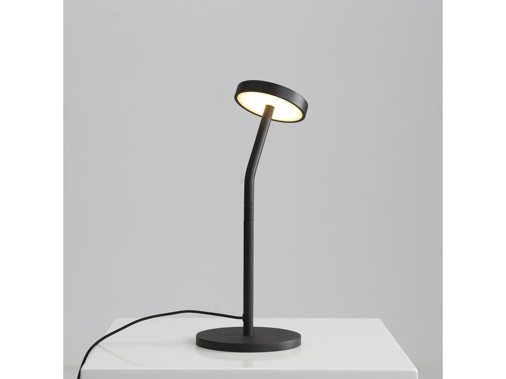 Moderná stolná LED lampa Corvus s otočnou konštrukciou na otočenie polohy difúzora na seba (355°). Teplé LED svetlo sa rovnomerne premieta na spodnú časť hlavy tienidla. LED stolová lampa Corvus je ideálna do moderných obývacích izieb a spální.