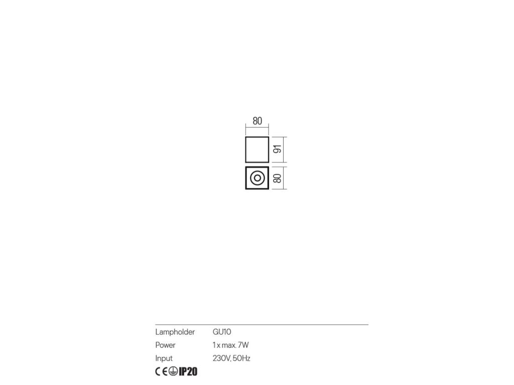 Stropné svietidlo do interiéru, kovová a extrudovaná hliníková konštrukcia, zvonku elektrostaticky lakovaná k dispozícii vo viacerých farebných variantách, zvnútra matne čiernu. Zdroj GU10 nie je súčasťou balenia.