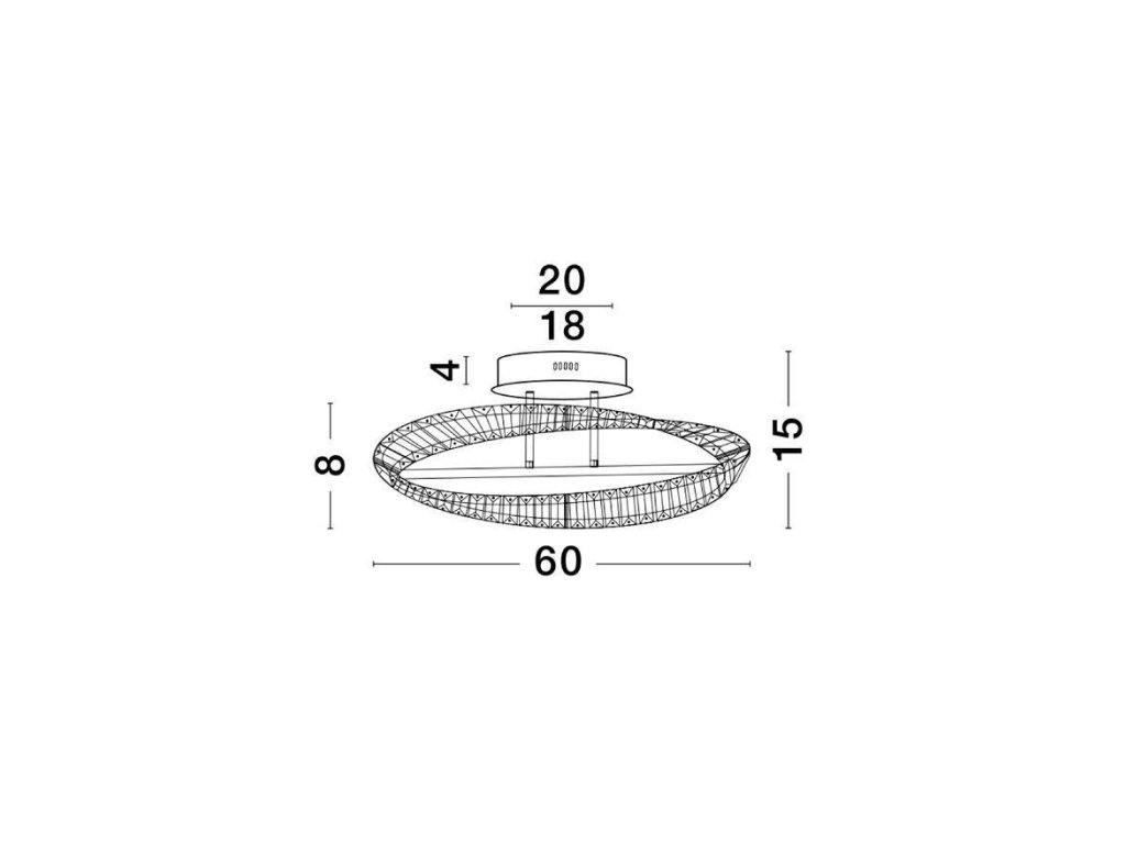 Zložitý dizajn dvoch krútených, zlatých, kovových kruhov vyplnených masívnymi krištáľovými hranolčekmi v kombinácii so zlatým kovaním prepožičiavajú svietidlu nádych klasickej elegancie a robia z neho ideálny doplnok do akéhokoľvek prostredia.