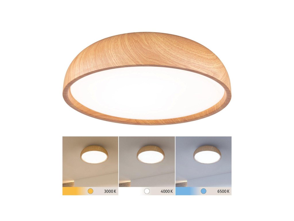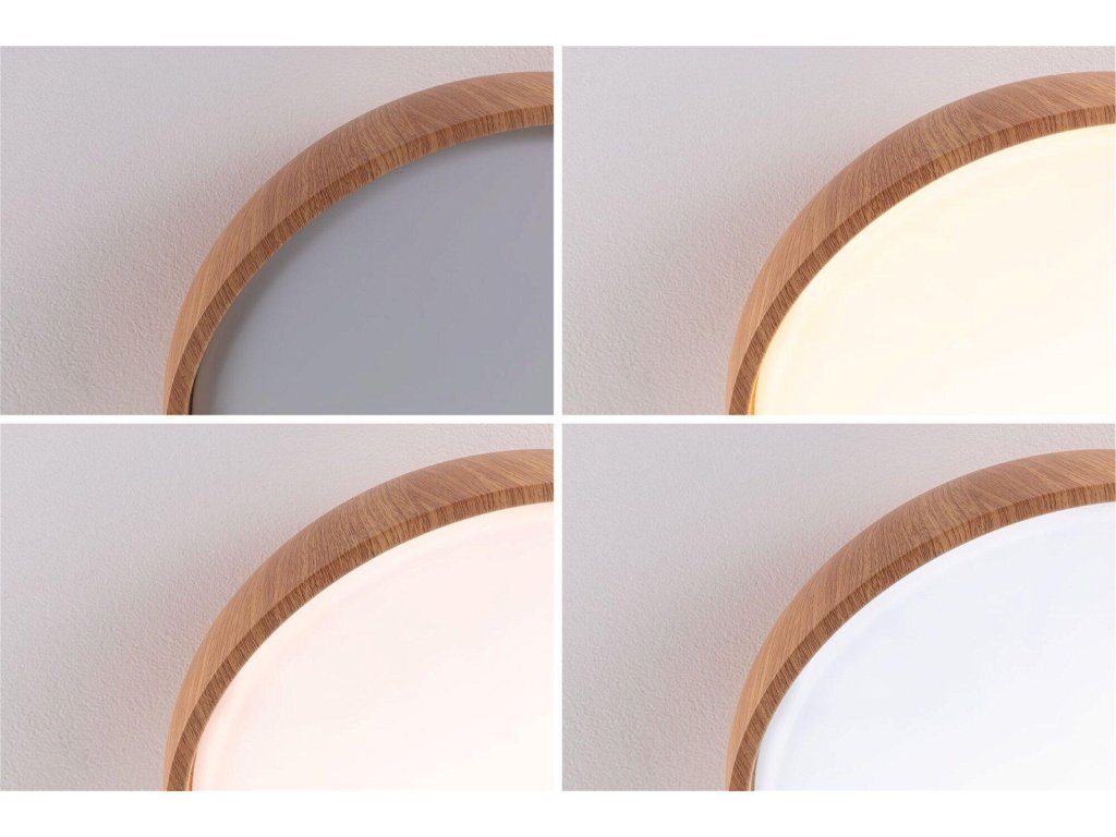Stropné svietidlo Oka je všestranné a moderné riešenie osvetlenia, ktoré sa perfektne hodí na použitie v kúpeľni, ale aj v iných obytných priestoroch. Jeho jednoduchý a decentný design z neho robí štýlový doplnok každej miestnosti. Základňa svietidla je vyrobená z kvalitného plastu vo farbe svetlého dreva alebo matnej čiernej a je navrhnutá tak, aby zaručovala dlhú životnosť aj vo vlhkom prostredí. Technológia ovládania White Switch je unikátnou funkciou. Táto technológia vám umožňuje vybrať si medzi troma rôznymi odtieňmi bielej v závislosti na vašich potrebách a dennej dobe: Teplá biela s 3000 K, neutrálna biela s 4000 K alebo denná biela s 6500 K. Stlačením existujúceho štandardného spínača svetla môže užívateľ prechádzať rôznymi farbami svetla a ukladať nastavenia pomocou funkcie pamäte. Whiteswitch - farebnú teplotu je možné nastaviť niekoľkonásobným stlačením nástenného vypínača