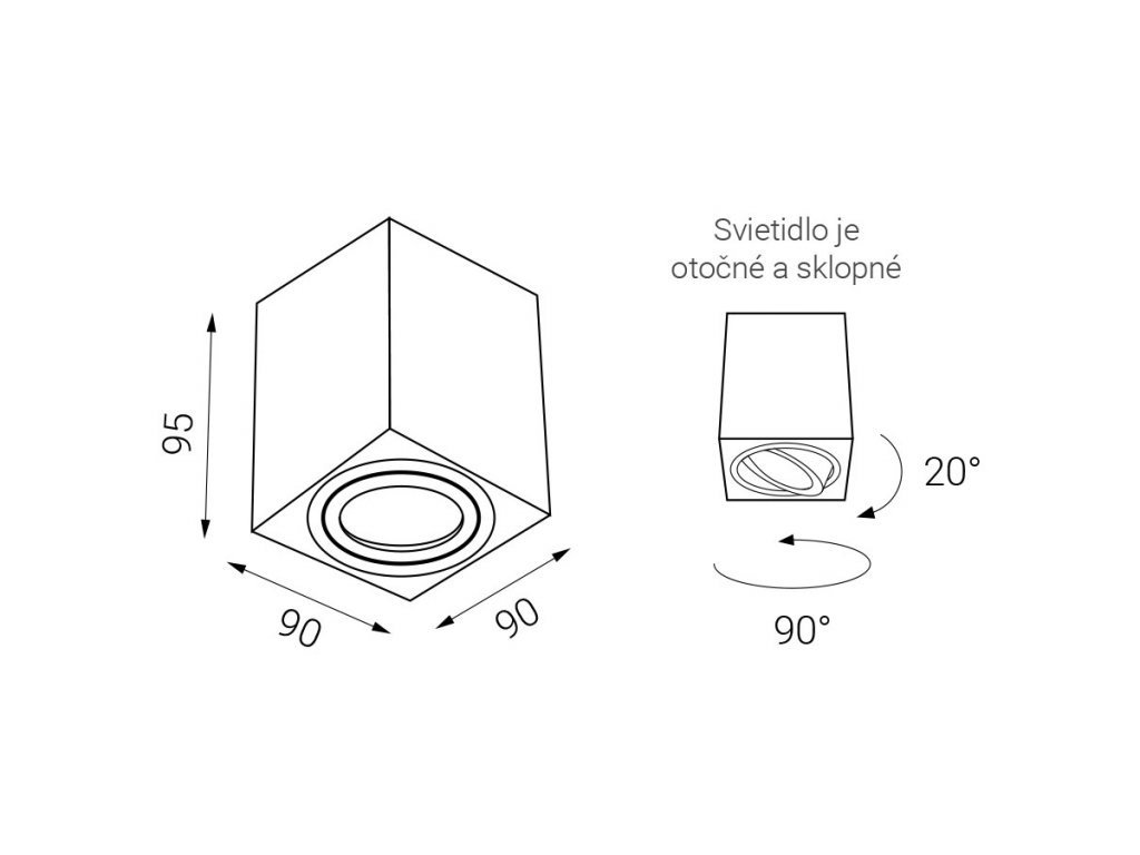 - hranaté pohľadové svietidlo určené na stropnú povrchovú