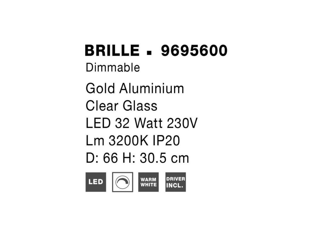 Stropné LED svietidlo BRILLE zlatý hliník a Sklo 32W 3200K stmievateľné