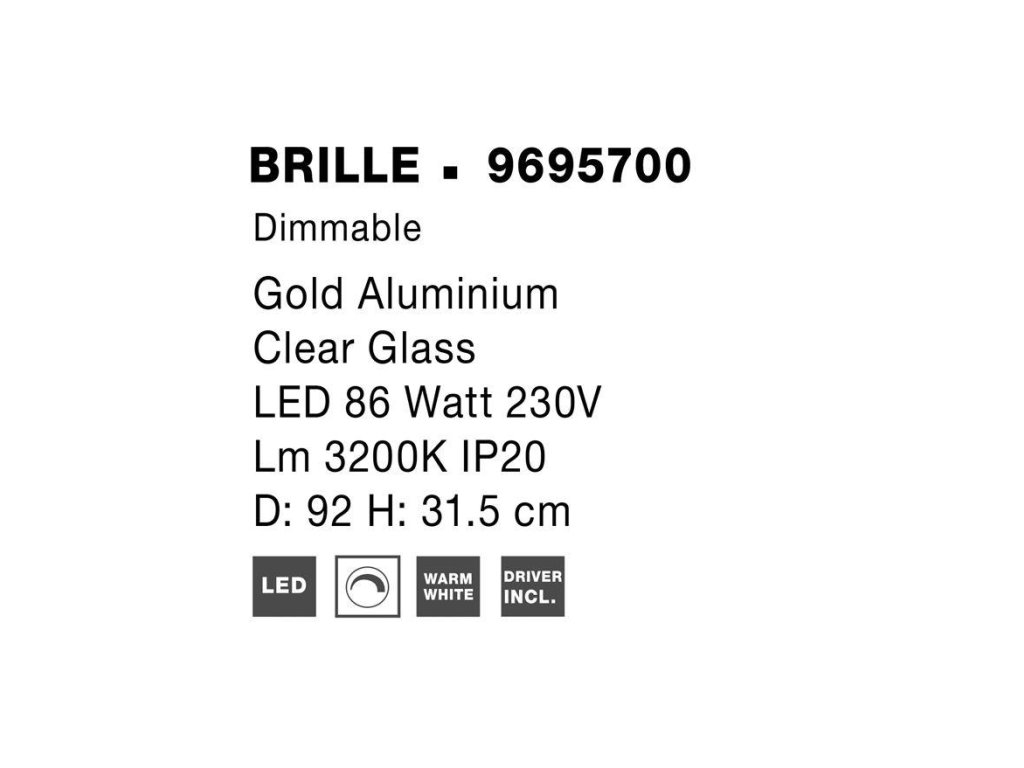 Stropné LED svietidlo BRILLE zlatý hliník a Sklo 86W 3200K stmievateľné