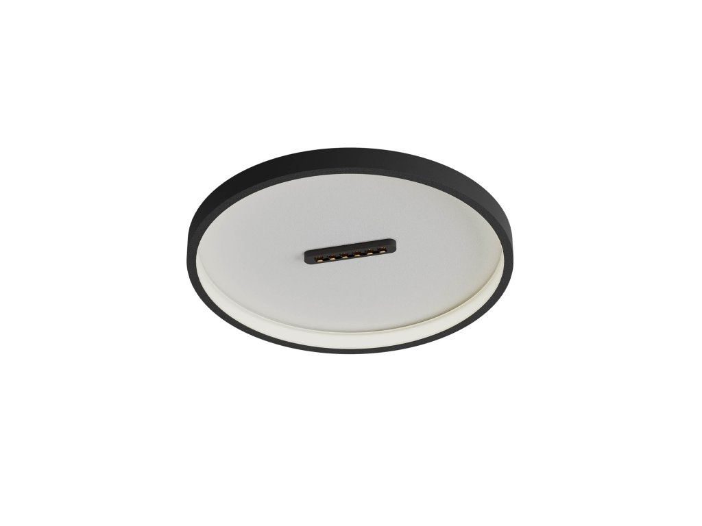 Interiérové stropné svietidlo, stmievateľné pomocou trojstupňového stmievacieho spínača, osadené SMD LED diódami, kovová a hliníková konštrukcia elektrostaticky lakovaná zvonku pieskovo čiernou alebo bielou farbou a zvnútra matne bielou farbou s matne čiernym stredovým prvkom, opálový PVC.