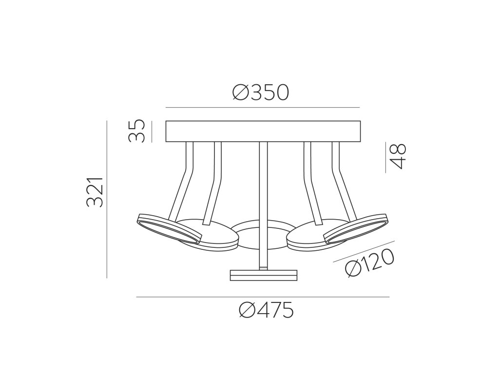 Moderné stropné svietidlo Corvus tvorené šiestimi difúzormi s integrovaným LED osvetlením. Svetlo je vyžarované rovnomerne cez difúzory, ktoré svetlo príjemne rozptyľujú. Moderné a originálne LED stropné svietidlo je vhodné do obývacích izieb alebo jedální.