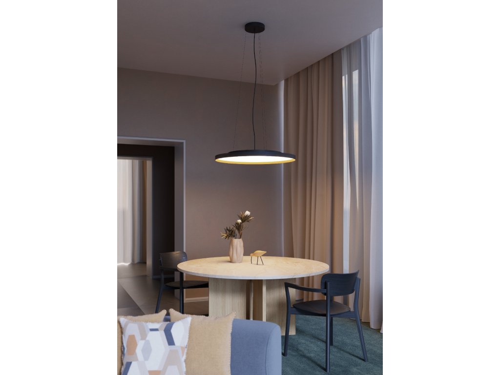 Stropné svietidlo vybavené SMD LED, s možnosťou zmeny teploty farby 3000K, 4000K a 5000K, stmievateľné TRIAC alebo DALI stmievačom. Tlakovo liata hliníková konštrukcia a kov, elektrostaticky lakovaný v pieskovej čiernej, bielej, bielo-zlatej alebo čierno-zlatej farbe, polykarbonátový mikroprizmatický difúzor s UGR<19.