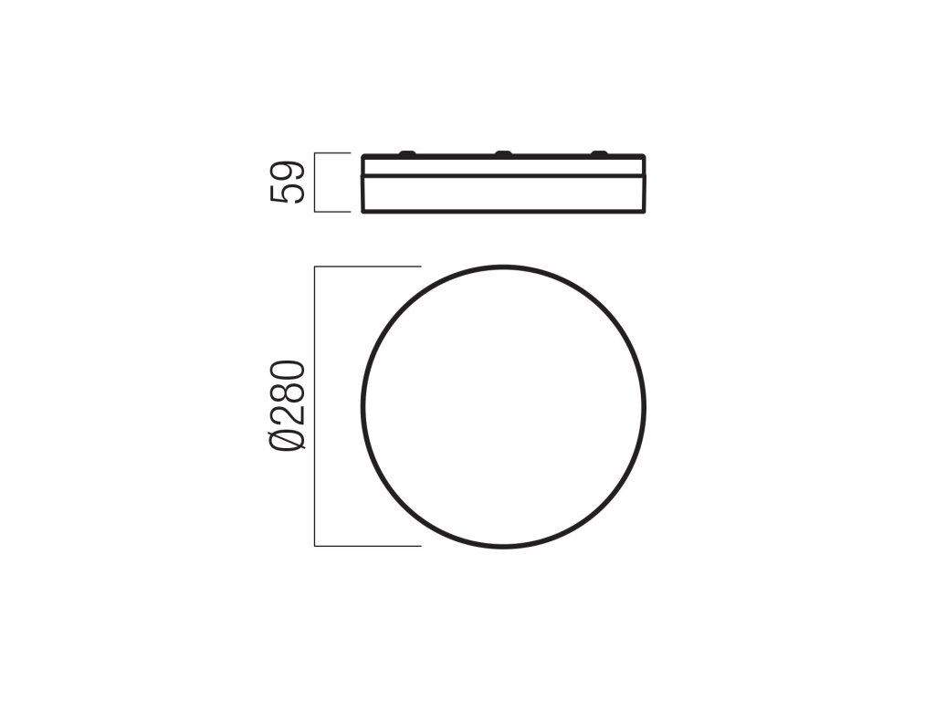 Stropné svietidlo do interiéru, chránené proti vlhkosti, osadené LED diódami SMD, s možnosťou voľby teploty farby svetla, hliníková konštrukcia lakovaná matne čiernou, bielou alebo chrómovou farbou, a difúzor z PMMA lakovaný na vnútornej strane bielo a na vonkajšej strane priehľadný.