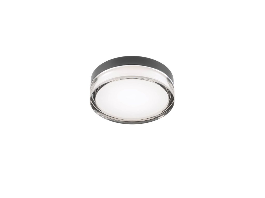 Stropné svietidlo do interiéru, chránené proti vlhkosti, vybavené LED diódami SMD, hliníková konštrukcia lakovaná matne čiernou, bielou alebo chrómovou farbou, a difúzor z PMMA lakovaný na vnútornej strane bielo a na vonkajšej strane priehľadný.