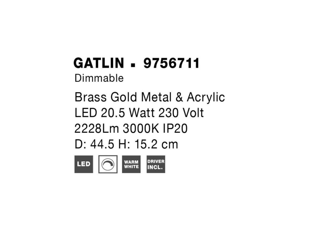 Stropné LED svietidlo GATLIN mosadzný zlatý kov a akryl 20.5W 3000K stmievateľné