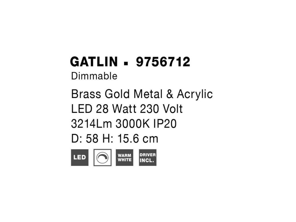 Stropné LED svietidlo GATLIN mosadzný zlatý kov a akryl 28W 3000K stmievateľné