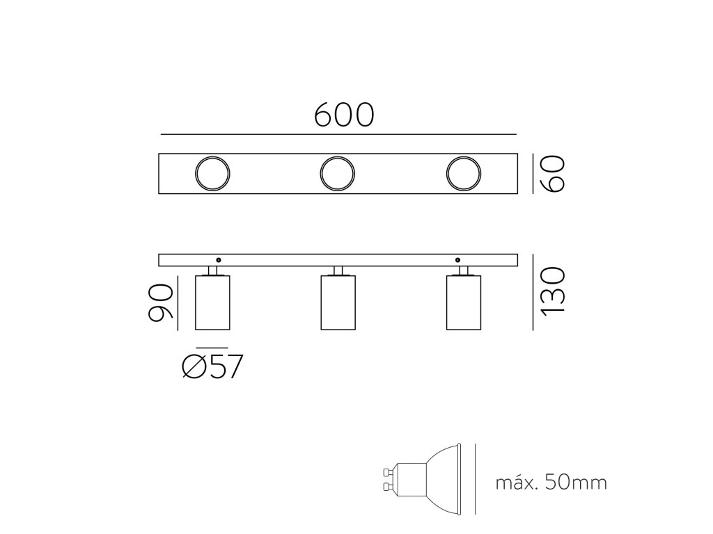 Stropné LED svietidlo GINA sa skladá z panelu na ktorom sú pripevnené tri reflektory. Každý z týchto reflektorov je možné nakloniť o 350 ° do strán a 90 ° vertikálne, čo umožňuje jeho umiestnenie do požadovanej polohy pre osvetlenie rôznych oblastí jediným svietidlom.