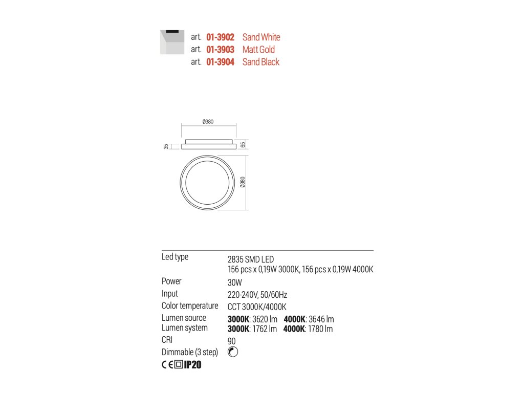 - okrúhla konštrukcia je z hliníka a kovu lakovaná pieskovo bielu, matne zlatú alebo pieskovo čiernu