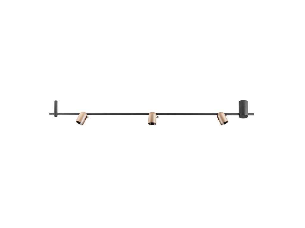Interiérové stropné LED stmievateľné svietidlo, extrudovaná hliníková konštrukcia lakovaná matnou čiernou farbou a nastaviteľné spoty vo farbe strieborná káva - čierna, priehľadný polykarbonátový difúzor.