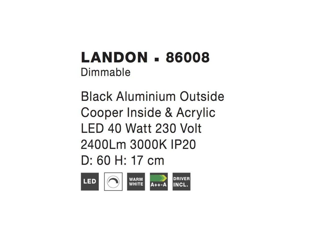 Stropné LED svietidlo LANDON čierne, 40W 3000K stmievateľné