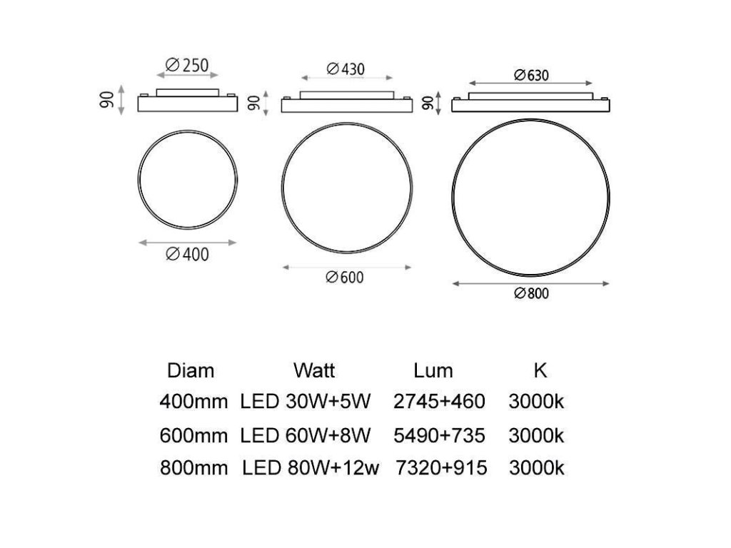 dostupné v 3 veľkostiach - 40, 60 a 80 cm av 2 farbách svetla - 3000K a 4000K av dvoch farebných prevedeniach čierna a biela