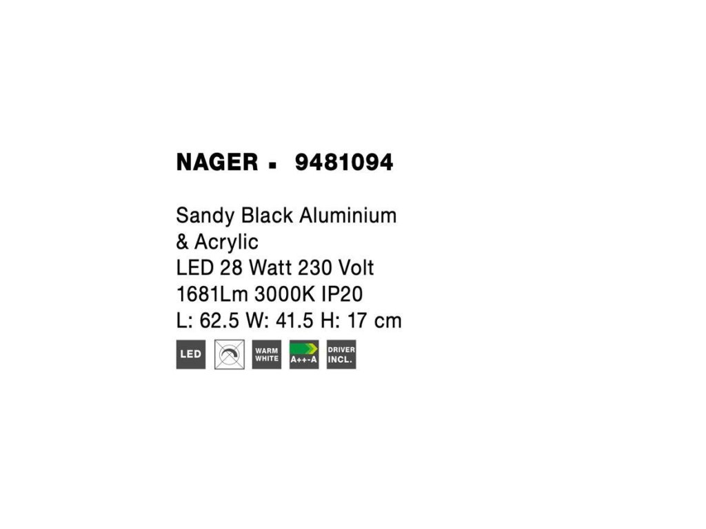 Stropné LED svietidlo NAGER čierny hliník a akryl 28W 3000K