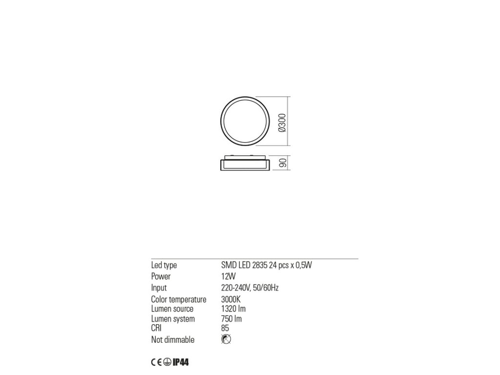 - osvetlenie je ideálne pre použitie v kúpeľniach, práčovniach a vlhkých miestnostiach, s krytím IP44.
