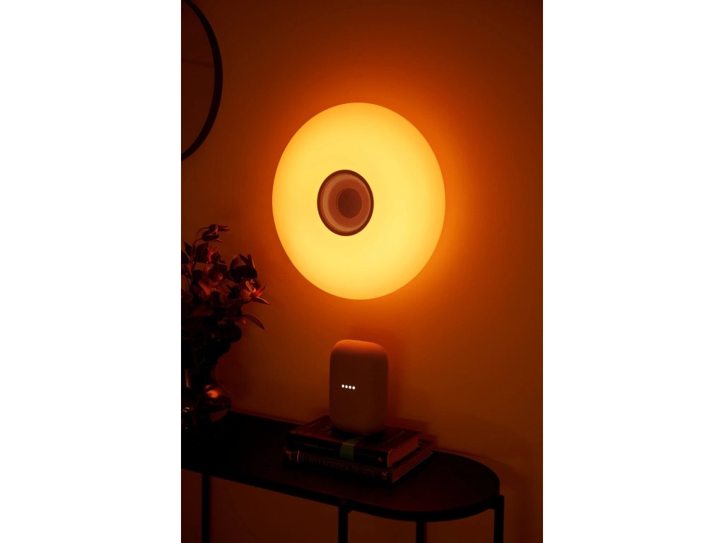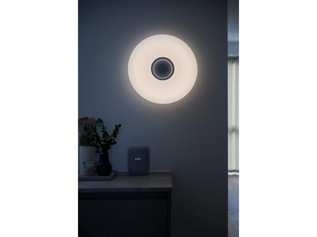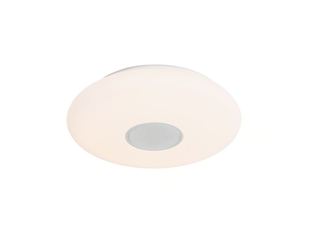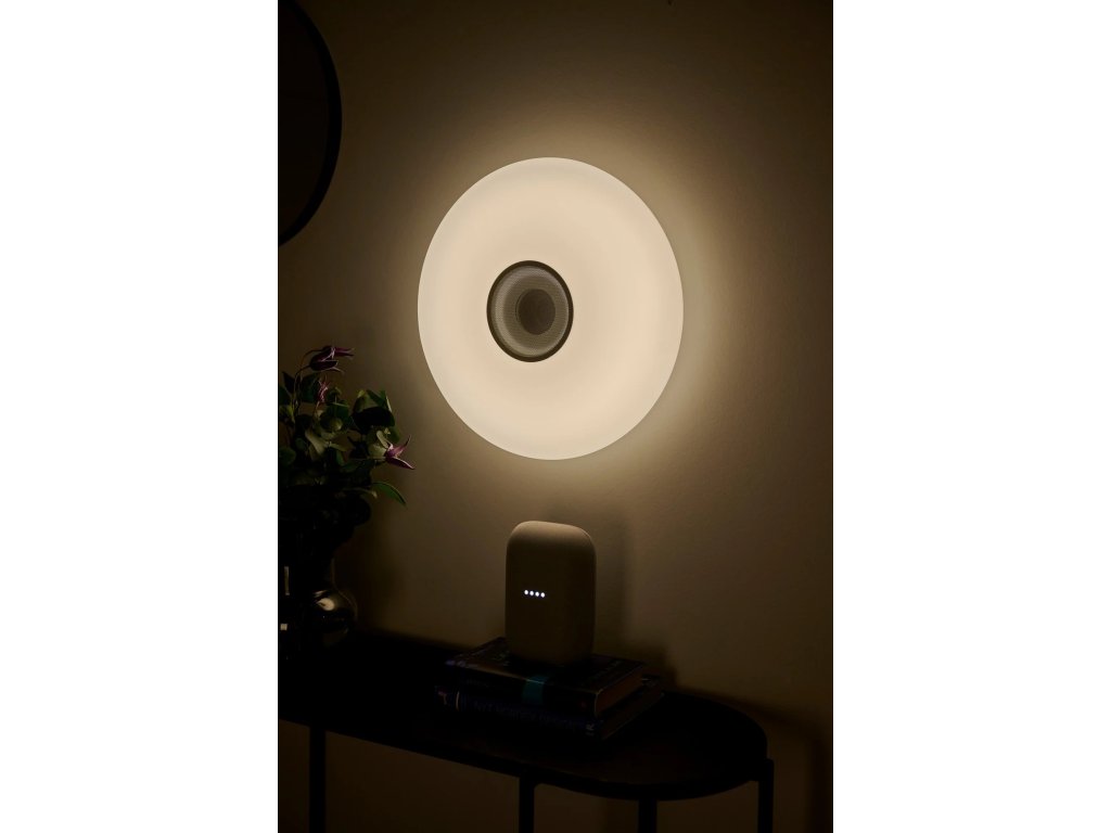 Okrúhle stropné svietidlo Djay Smart s možnosťou nastavenia farebnej teploty, farby, svetelného toku a zapnutia vašej obľúbenej hudby vďaka aplikácii Nordlux Smart Light, v bielom prevedení.