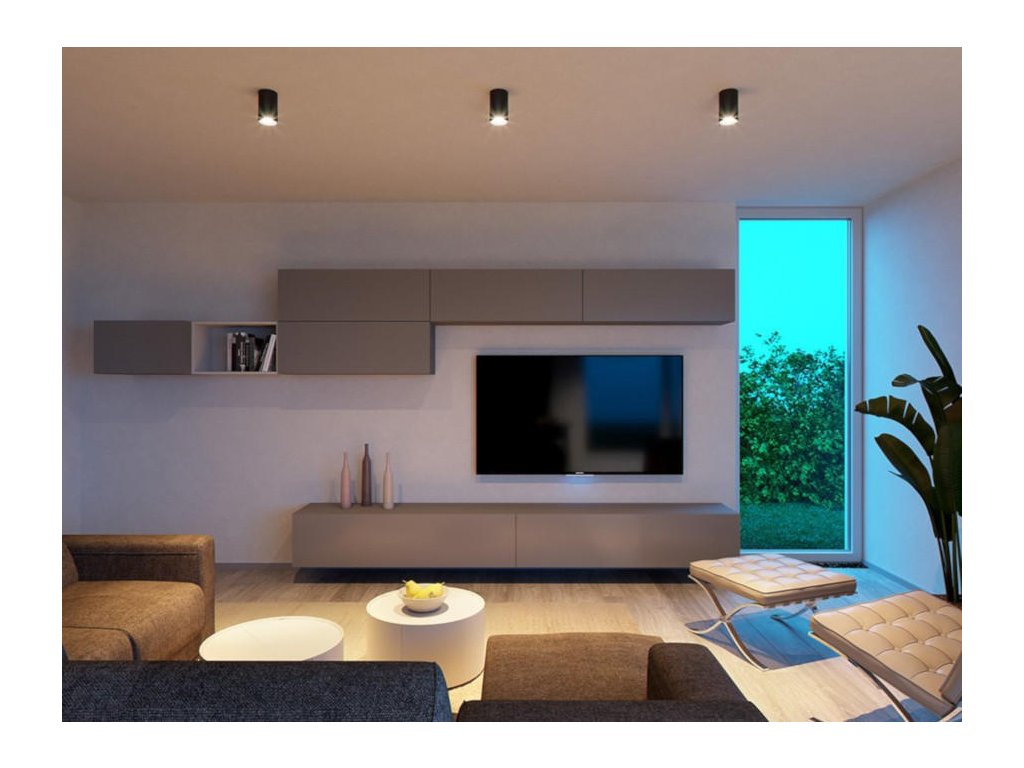 - rad okrúhlych povrchových svietidiel určených na montáž do interiéru