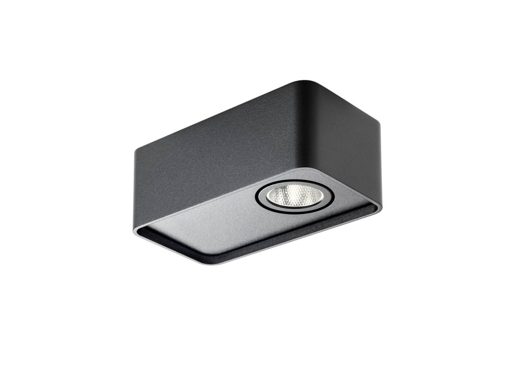 Stmievateľné interiérové stropné svietidlo s nastaviteľným bodom, vybavené COB LED, s konštrukciou z extrudovaného hliníka lakovanou matnou čiernou, bielou, kávovou alebo niklovou farbou, a priehľadným polykarbonátovým difúzorom.