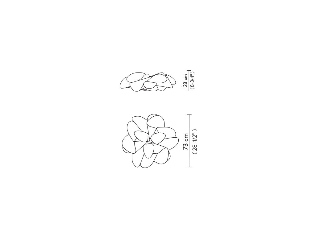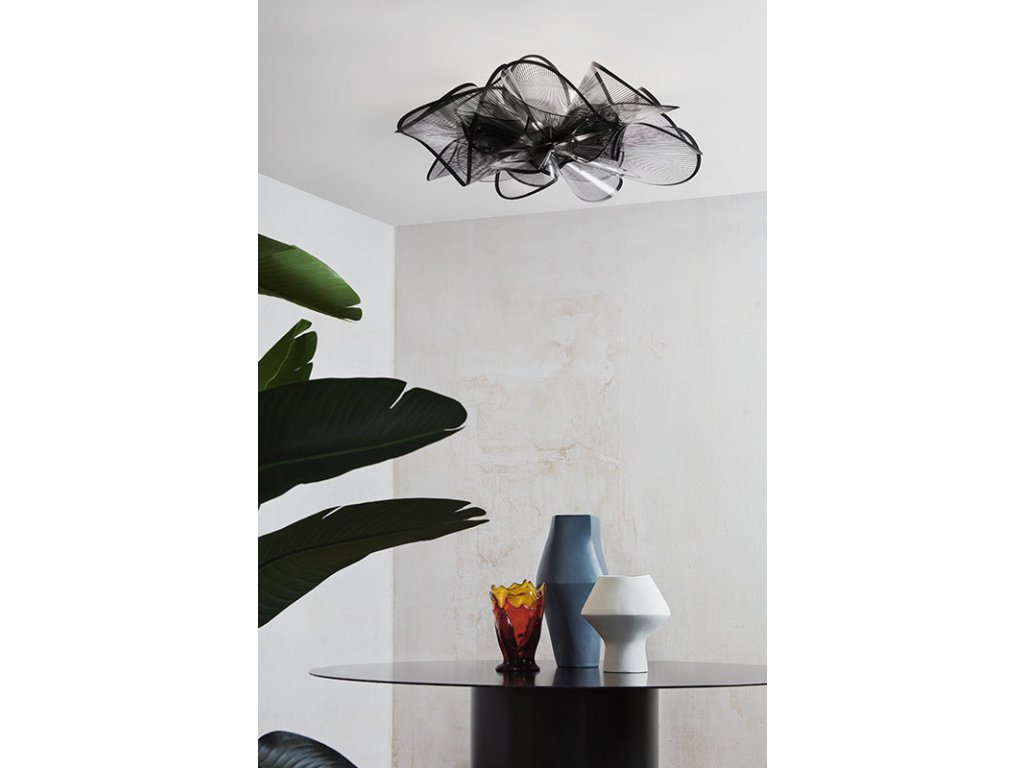 La Belle Étoile je inšpirovaná jemným volánom tutu a organickou dokonalosťou čerstvého kvetu. Stropná/aplikovaná verzia kombinuje technológiu exkluzívneho magnetického závesného systému, ktorý uľahčuje rýchlu výmenu centrálnej LED diódy, s moderným dizajnom využívajúcim transparentné a textúrne potlačené materiály. Nerozbitná a pritom takmer beztiažová lampa je kompletne ručne vyrobená v ateliéri Slamp, s mäkkým, svietivým zdrojom LED, ktorý je možné stlmiť od plného osvetlenia až po jemnú ambientnú žiaru, ktorá dopĺňa jej okolie. La Belle Étoile vnesie do každého interiéru luxusný pôvab a podčiarkne ho dotykom rafinovanej elegancie.