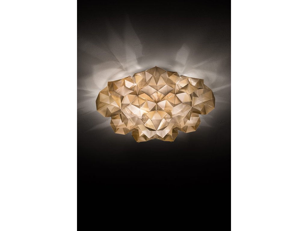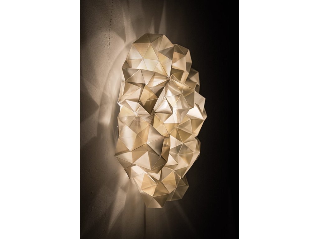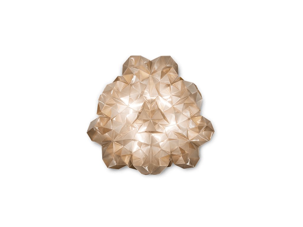 Rovnako ako svetlo dopadá na kryštály vystupujúce zo skalných štrbín a vytvára tak neustále sa meniaci, poetický a mnohotvárny kaleidoskop, je Drusov súčasný pohľad na zvýraznené uhly jemne tlmený centrálnym zdrojom svetla, ktorý prináša hĺbku a harmóniu medzi osvetlením a tvarom. stropná/aplikačná aj závesná verzia, pôsobí vďaka diamantovému dojmu a chromatickému tieňovaniu sviežo a trendy. Vďaka potlači Lentiflex® vo verzii Velvet je každý dúhový, hodvábny kus jedinečný.