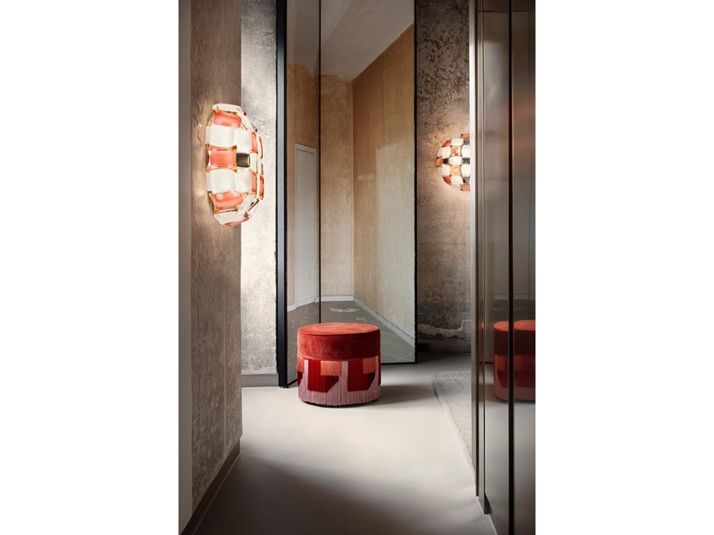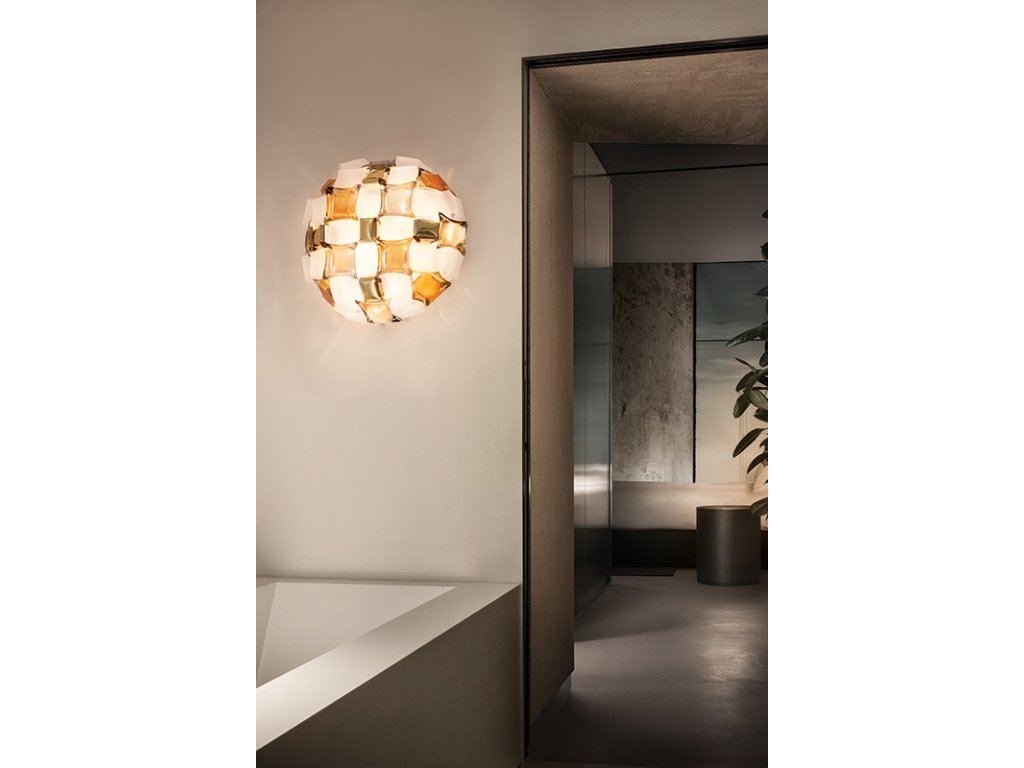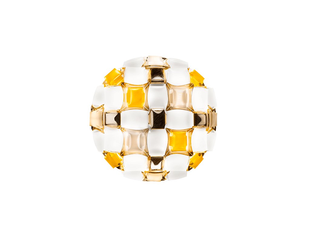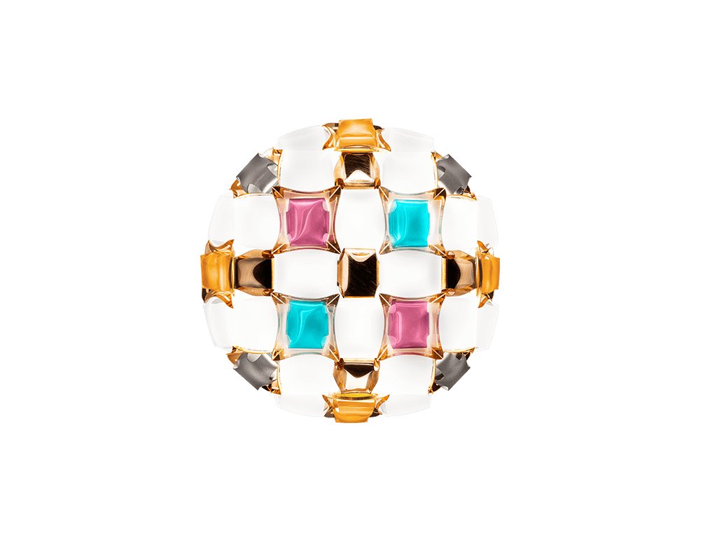 Mida je stropné/nástenné svietidlo s naším exkluzívnym magnetickým systémom inšpirovaným svetom šperkov haute couture. Pavéza drahých kameňov inkrustuje takmer neviditeľné osadenie a leštené kabošony sú geometricky rozosiate po kvetinovej korune s hodvábnymi, dúhovými kameňmi. K dispozícii v piatich farebných kombináciách, od krikľavej Multicolor po univerzálnejšie White/Platinum a White/Gold. Mida je kompletne ručne vyrobená z bieleho Opalflexu® a potlačeného Lentiflexu®, ktorého hodvábny morfujúci efekt sa strieda s kartáčovanými pokovovanými "drahokamami". Mida urobí každú miestnosť mimoriadne luxusnú.
