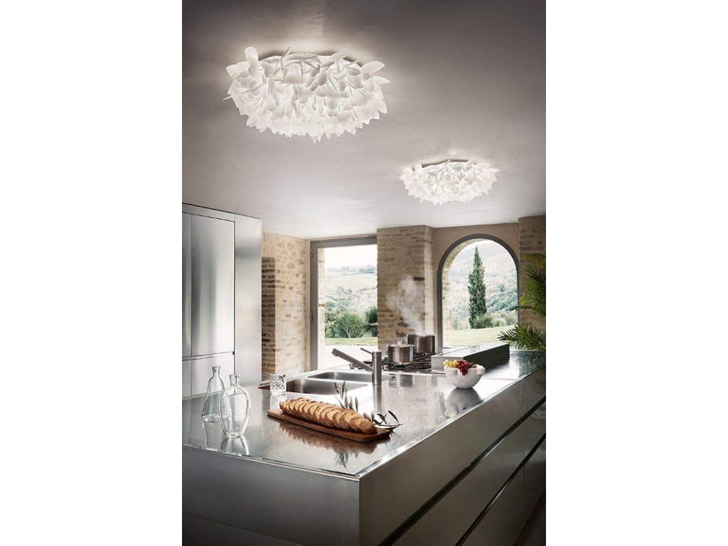 Stropné svietidlo Veli Foliage je v rôznych veľkostiach ideálne aj ako nástenné svietidlo. Ako každé svietidlo od spoločnosti Slamp je ručne vyrobené systémom spojov a ohybov bez použitia lepidla alebo skrutiek. Originálne a moderné nástenné svietidlo inšpirované svetom prírody a vybavené magnetickým upevňovacím systémom, ktorý umožňuje oddeliť difúzor od elektrickej časti pre rýchlu a jednoduchú údržbu.