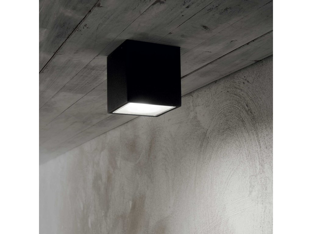 Stropné prisadené svietidlo TECHO z kolekcie moderného osvetlenia značky Ideal Lux v tvare kvádra s dĺžkou jednej strany 9 cm je vhodné na osvietenie vonkajších priestorov vďaka vysokému krytiu IP54, ktoré predstavuje čiastočnú ochranu pred prachom a zároveň ochranu proti striekajúcej vode. Telo je zhotovené z liateho hliníka s čiernou povrchovou úpravou nanášanou metódou práškovania. Hranatý difúzor je vyrobený z kvalitného tvrdeného skla v namrznutej čírej farbe. Svietidlo je osadené päticou GU10 pre žiarovku s maximálnym príkonom 1 x 20 W (zdroj nie je súčasťou balenia). Celkové rozmery svietidla sú 9,5 x 9 x 9 cm. Je napájané zo siete na 220-240V a vzťahuje sa naň záruka 3 roky.