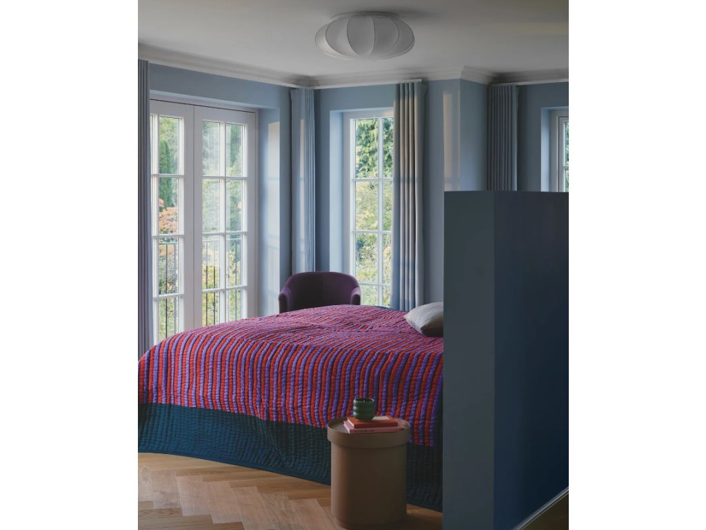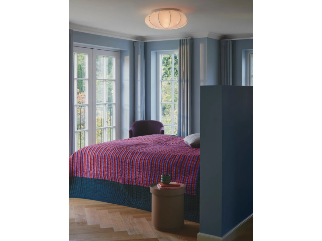 Stropné svietidlo Aeron s priemerom 60 cm má jednoduchý a vzdušný dizajn a jemný odtieň látky poskytuje jednotné a príjemné svetlo. Je ideálny na vytvorenie útulnej atmosféry v spálni. Aeron sa ľahko zostavuje pomocou drôtov a vstavanej sťahovacej šnúrky. Toto svietidlo sa ponúka v dvoch rozmeroch 40 a 60cm a taktiež v závesnej verzii.